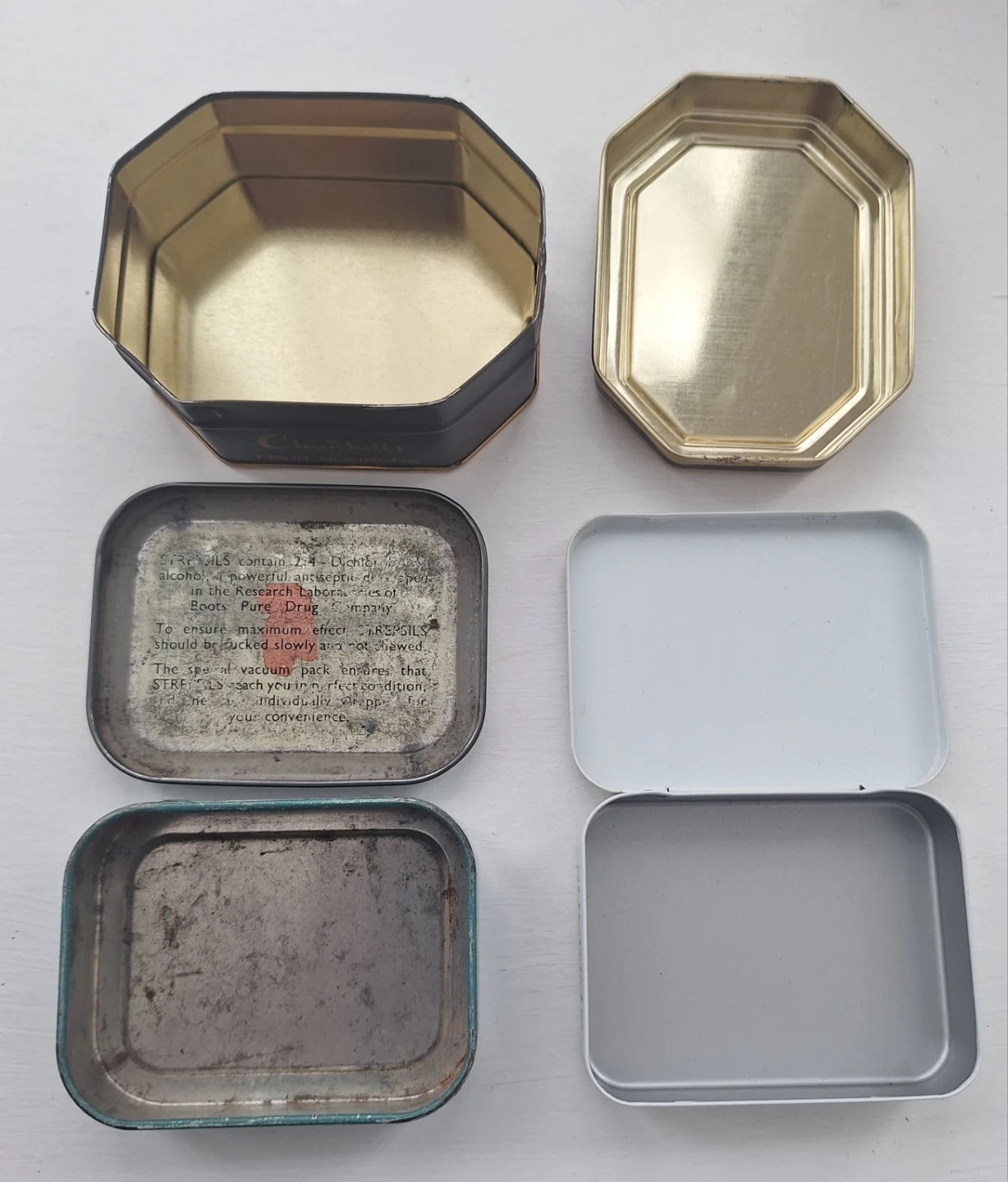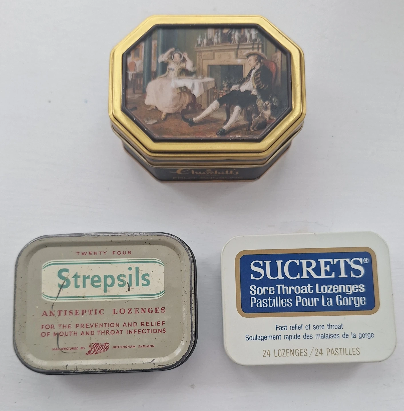 Vintage Churchill's, Strepsils, Sucrets Tins
