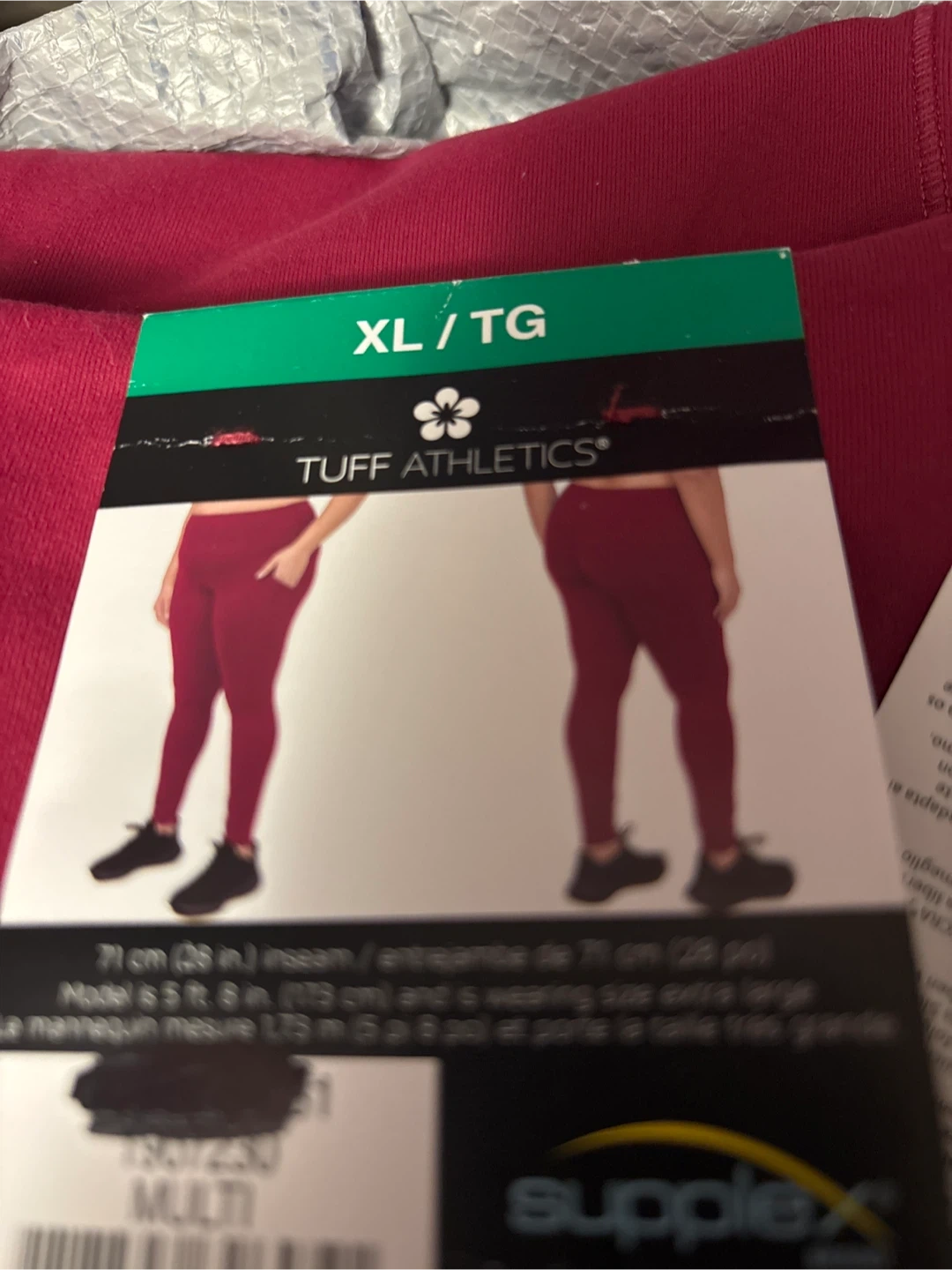Bundle of four pairs of pants in size XL/TG. Includes Tuff Athletics leggings, 32° HEAT pants, Gaiam leggings, and Champion cargo pants. All are new with tags.