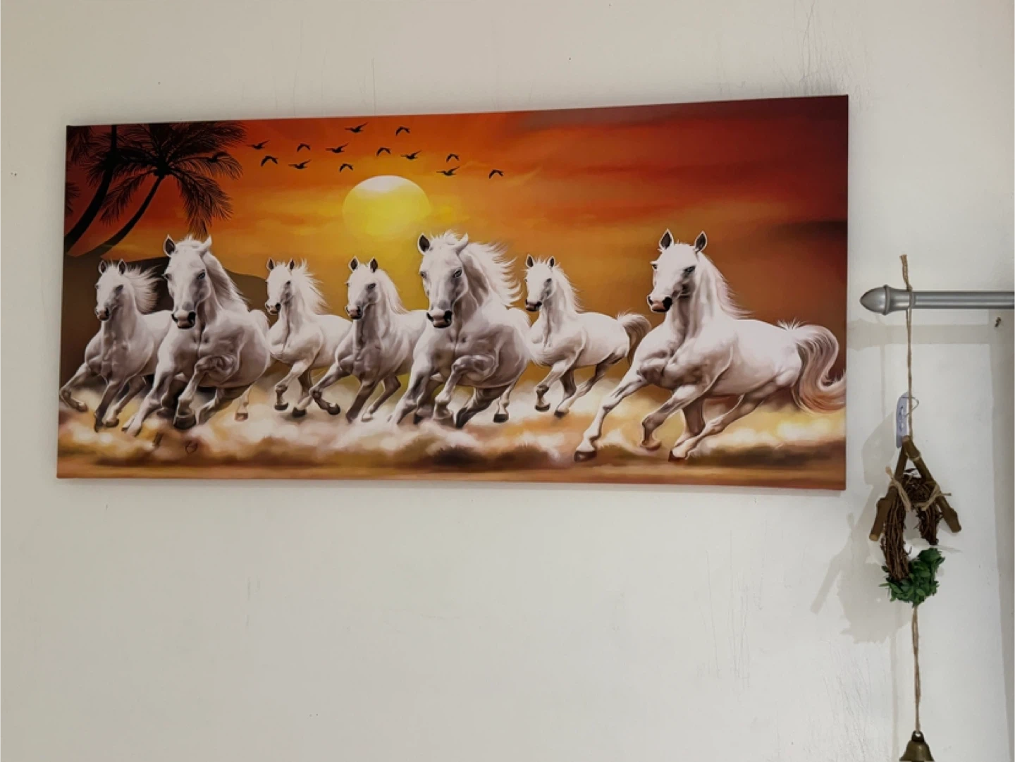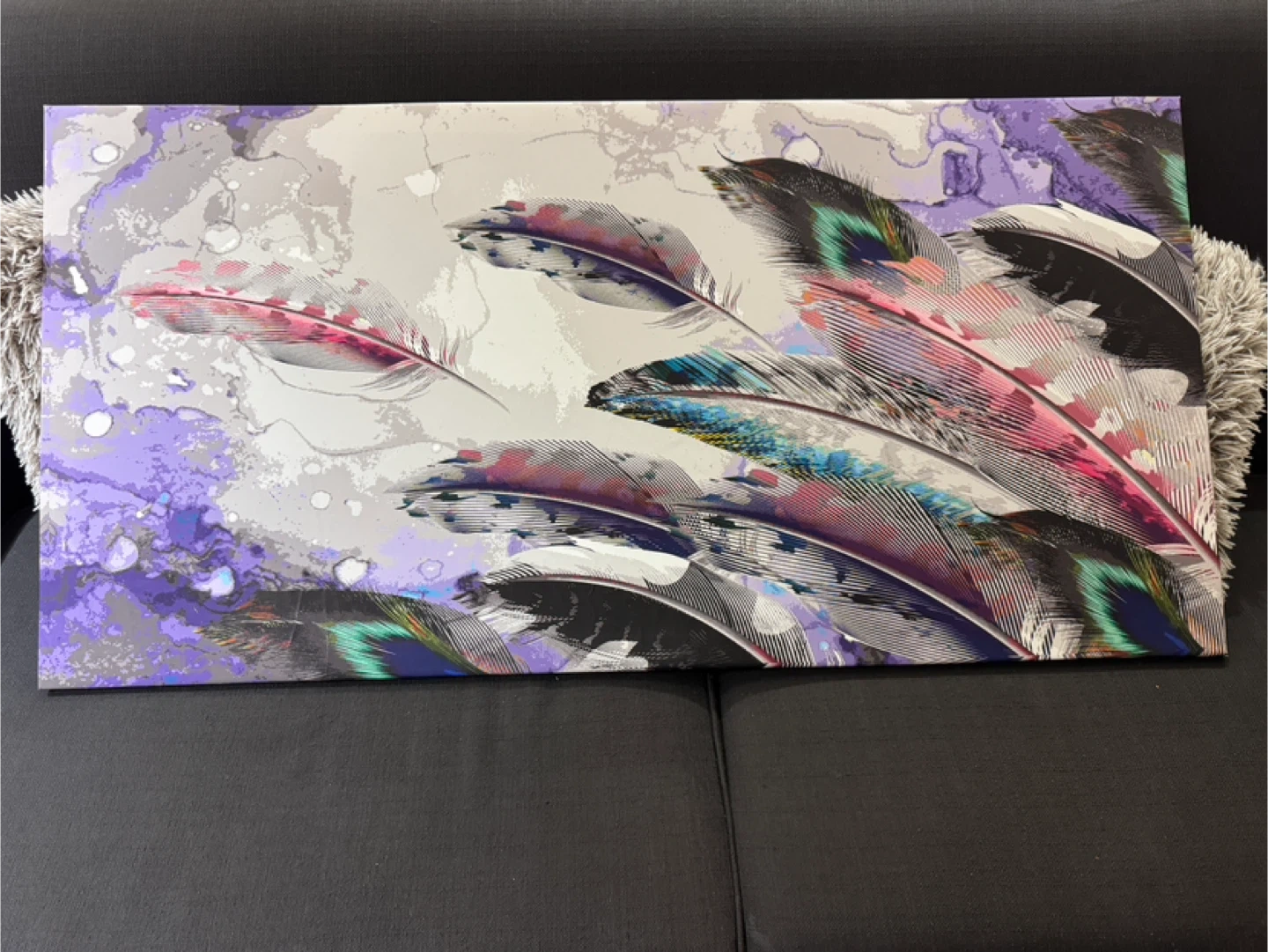 Beautiful canvas wall art featuring a vibrant sunset over the water with a boat. Another print showcases a serene mountain lake landscape at sunrise, reflecting the trees and sky. These pieces add a pop of colour and nature to any room!