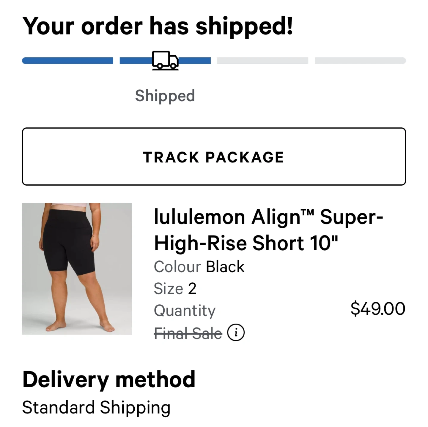 Lululemon Align Super-High Rise Short 10" in black. Size 2. Comfortable and supportive for workouts or everyday wear!