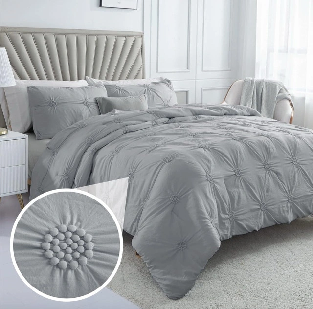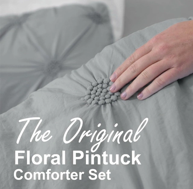 Add a touch of elegance to your bedroom with this brand new floral pintuck comforter set! The soft, inviting fabric and intricate floral design will transform your space into a cozy retreat. This set includes everything you need for a complete bedding makeover. Features: * Floral pintuck design * Soft and comfortable fabric * Complete bedding set Transform your bedroom into a serene sanctuary!