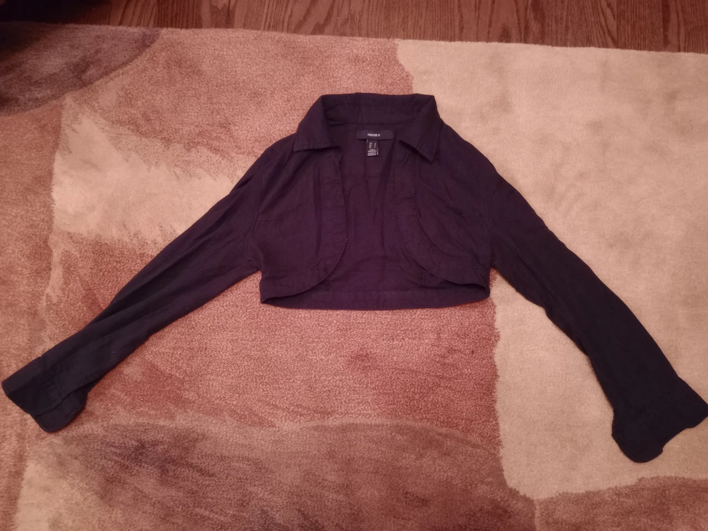 Add a touch of elegance to any outfit with this Forever 21 bolero, size small, featuring long sleeves and a cropped silhouette. It's in good condition.