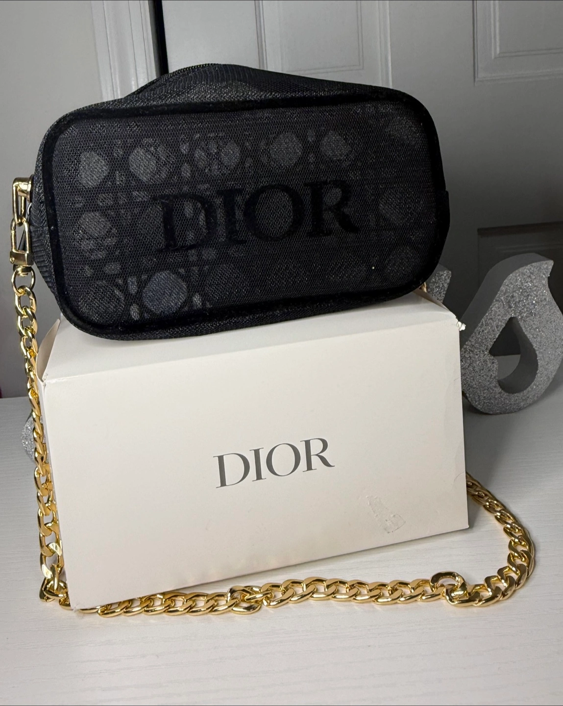 Dior GWP Black Mesh Pouch with Gold Chain and box