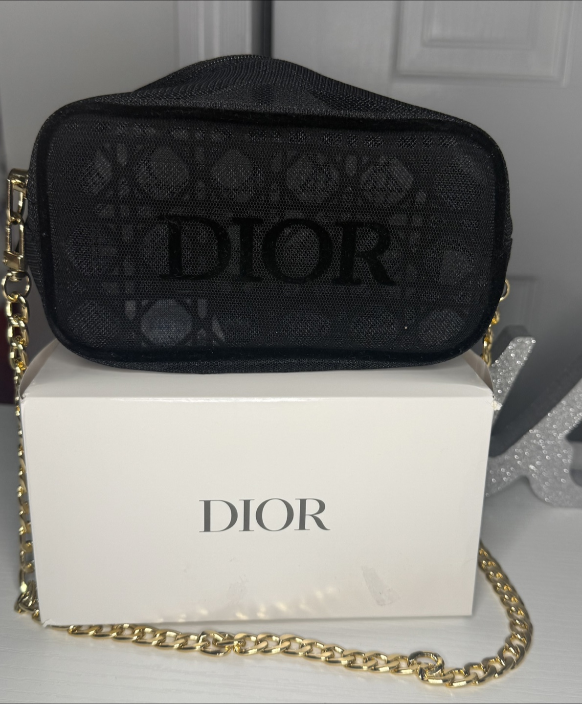 Dior GWP Black Mesh Pouch with Gold Chain and box