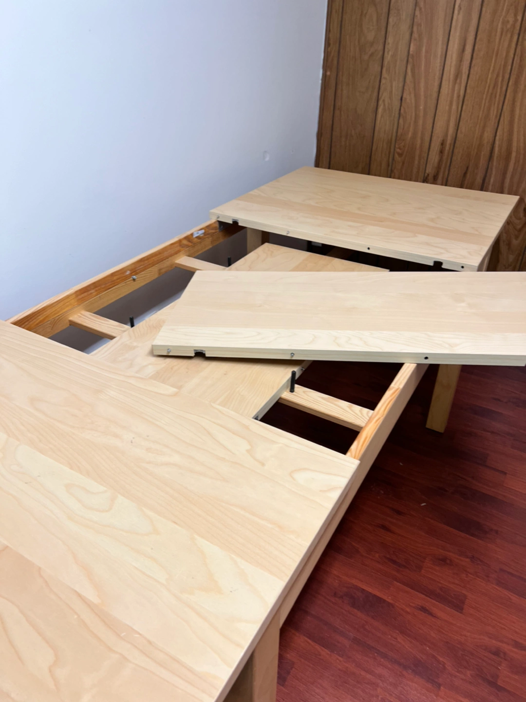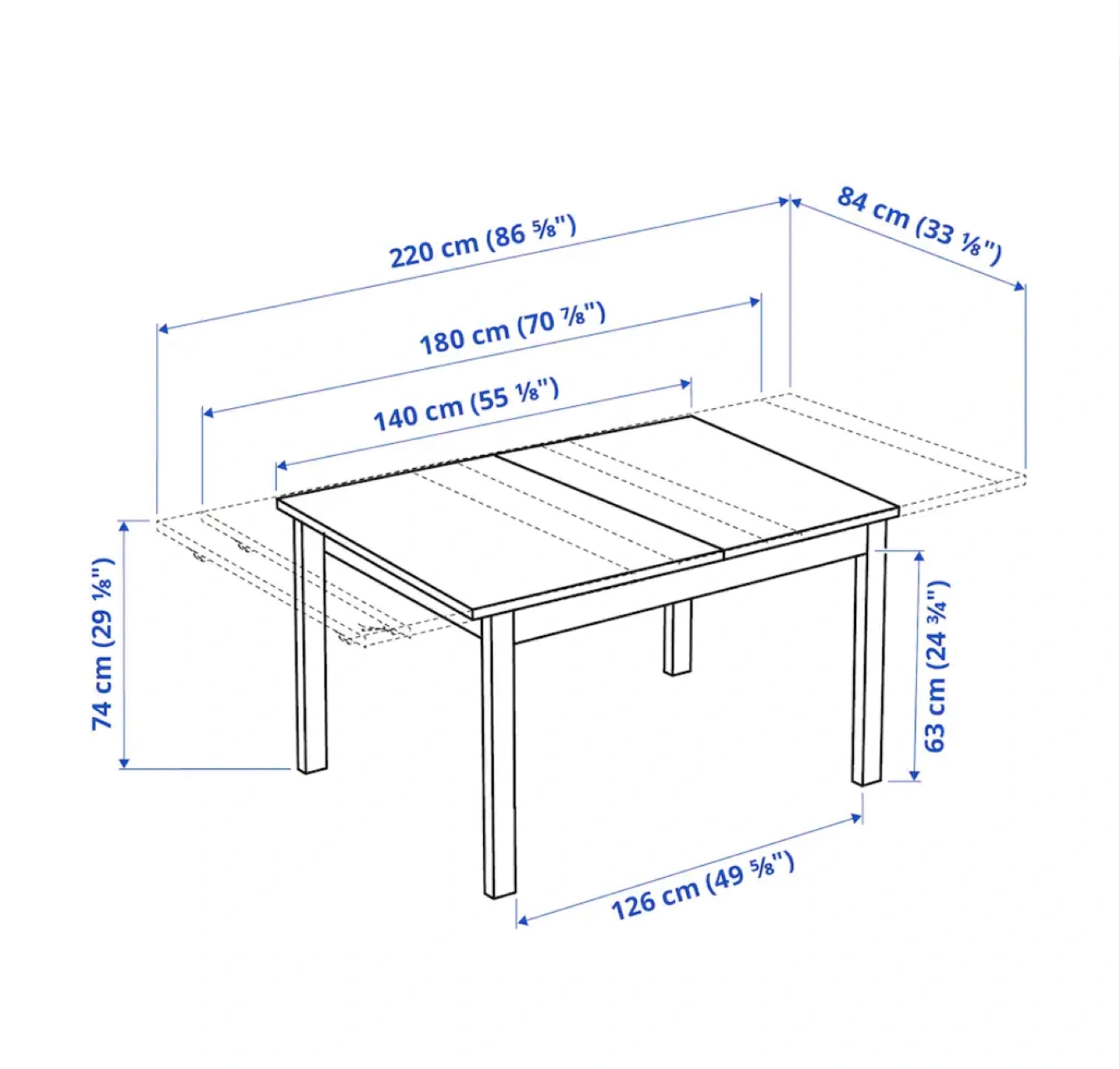 Extendable dining table with 2 extra leaves seats 4-8; makes it possible to adjust the table size according to need.