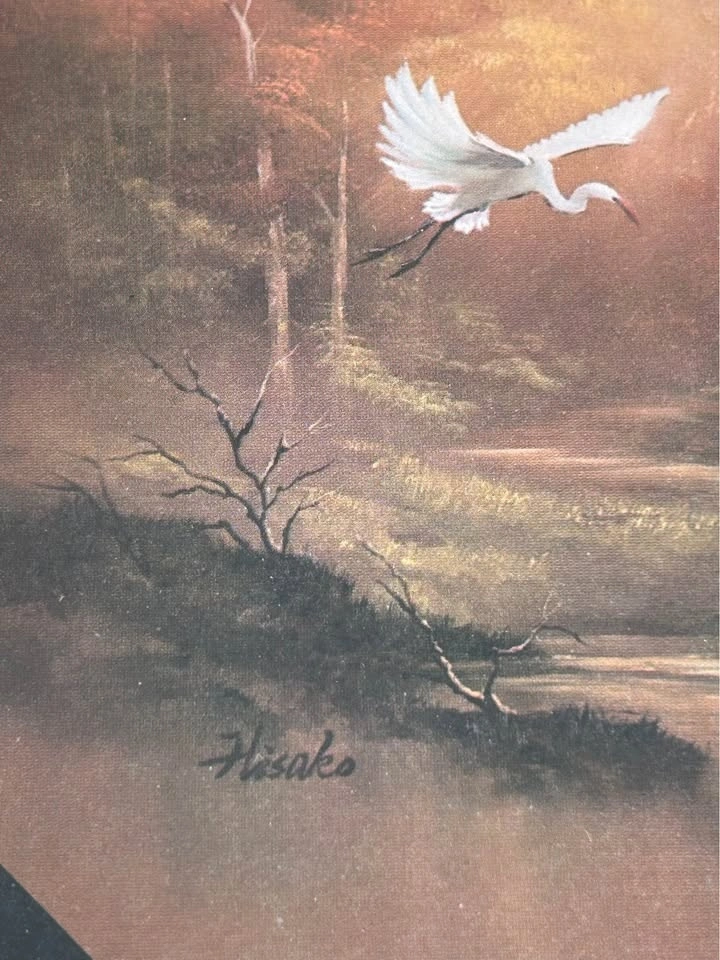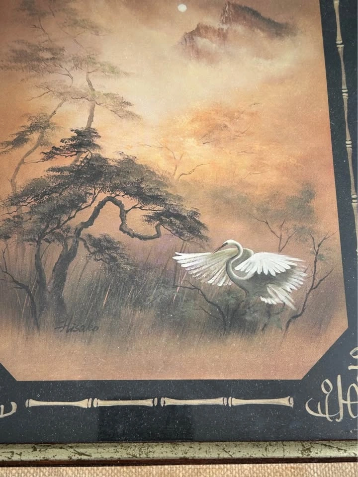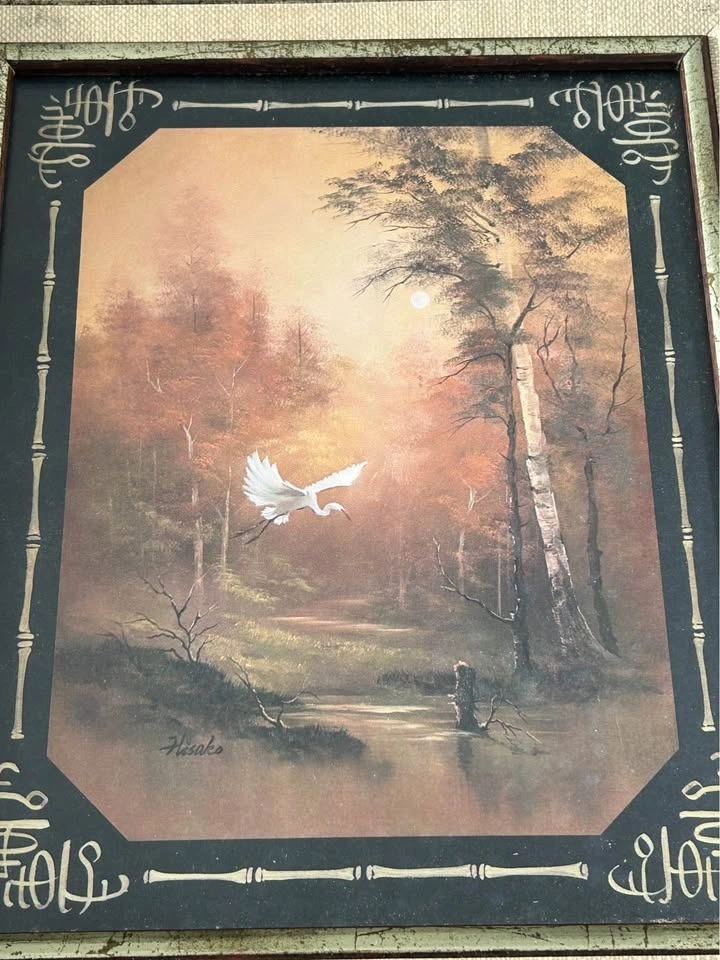 Vintage Framed Crane Landscape Art Prints – Matching Pair
