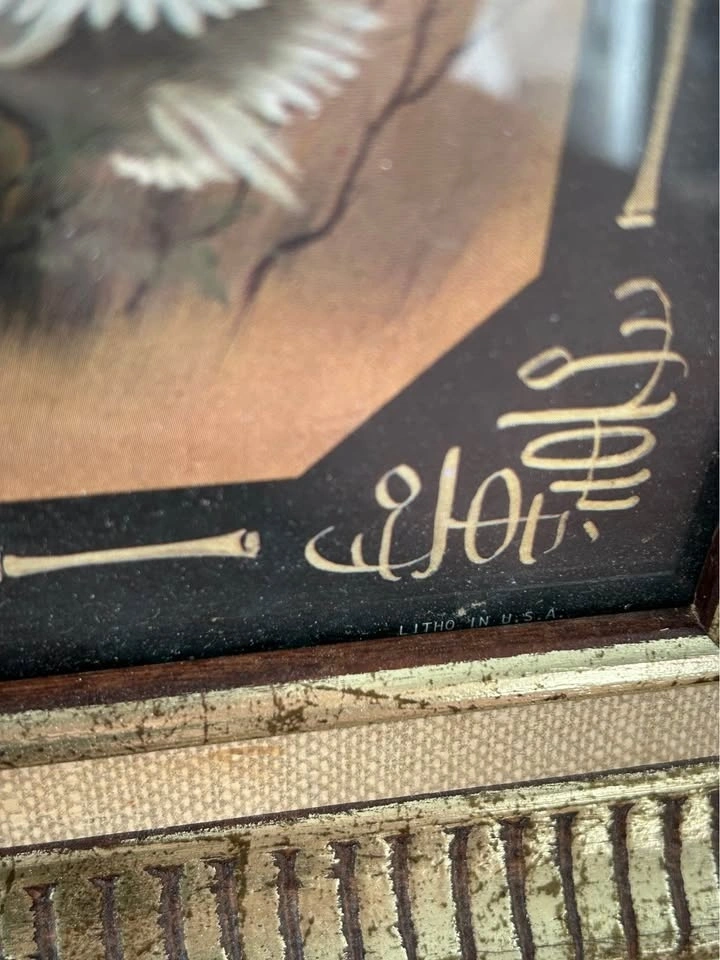 Produced in the early 1980s and presented in their original decorative gilt-style frames with black mats and ornamental corner details. The artwork is lithographed in the USA and designed as high-quality decorative wall art rather than original paintings.