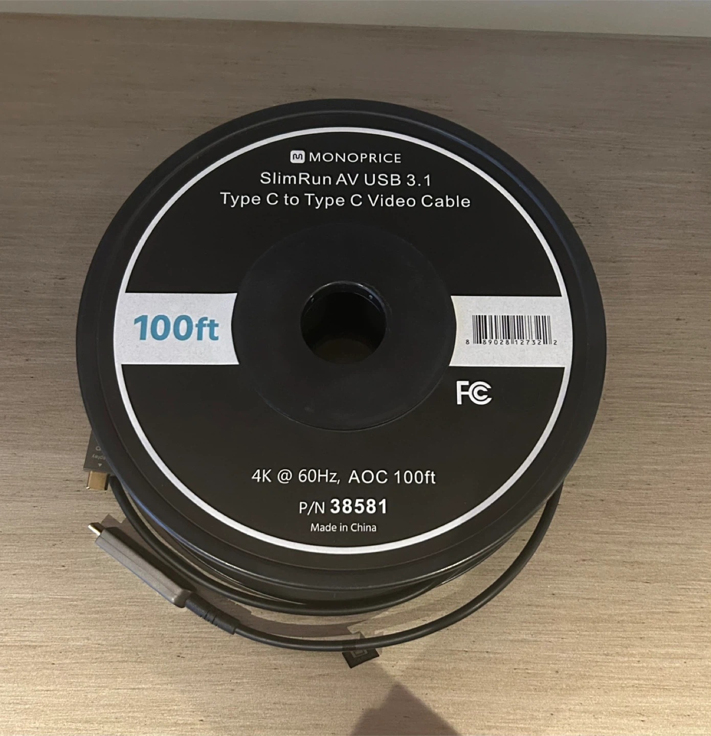 Brand New 100 Feet Monoprice SlimRun AV USB 3.1 Type-C to Type-C Video Cable 4K@60Hz. Fiber Optic AOC. Gold Plated Connectors.