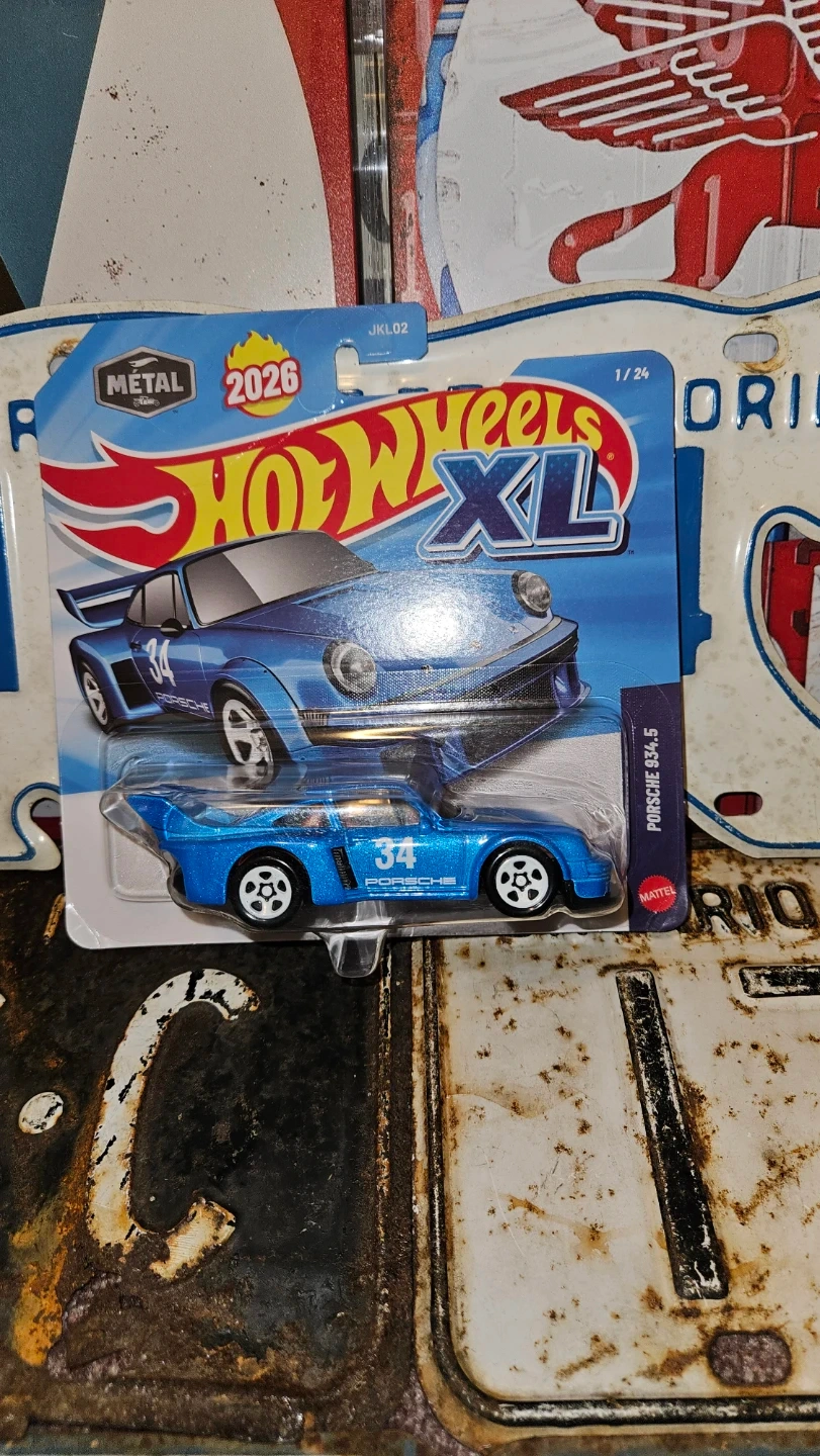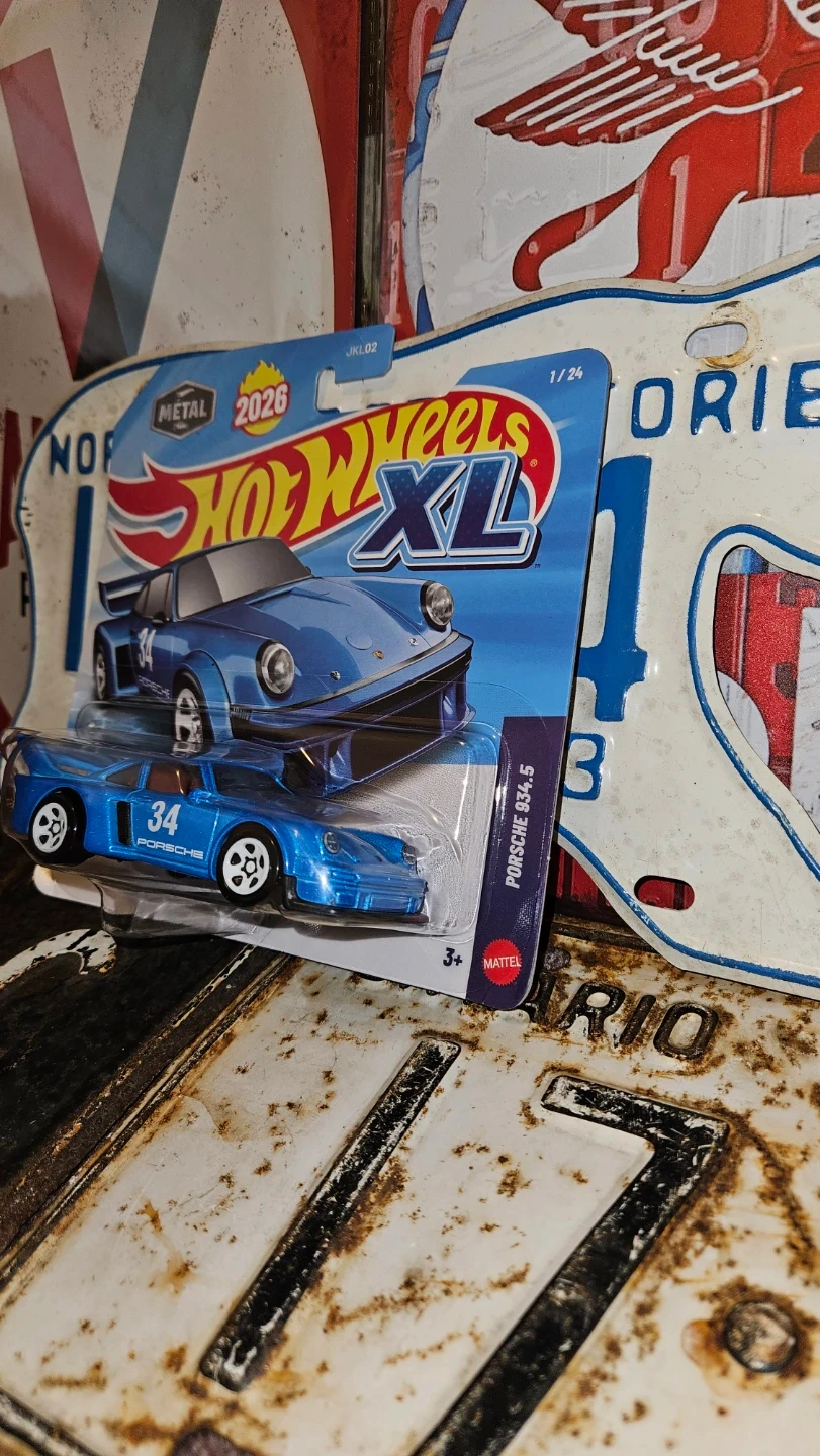 This is a Hot Wheels XL die-cast toy car. It's a blue Porsche 934.5 model. Recommended for ages 3 and up.