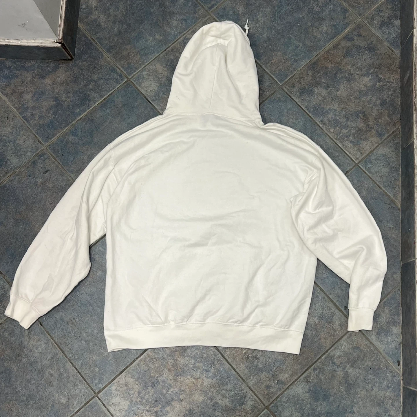 Graphic hoodie in white, size Medium.