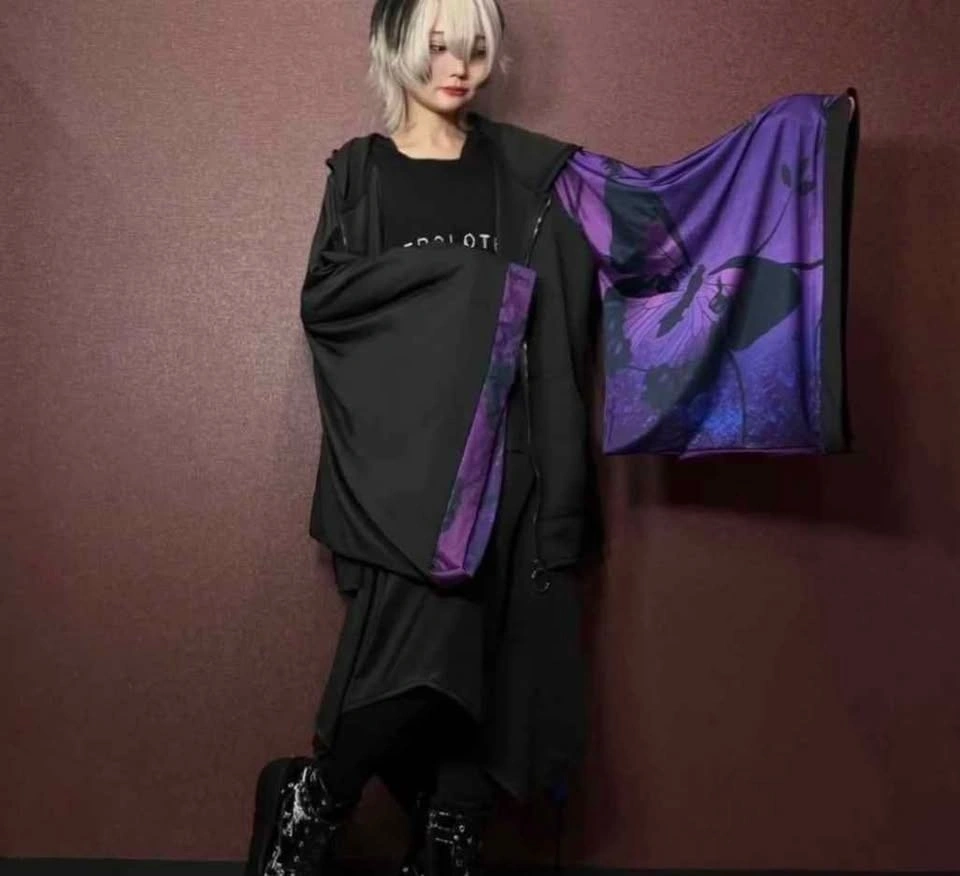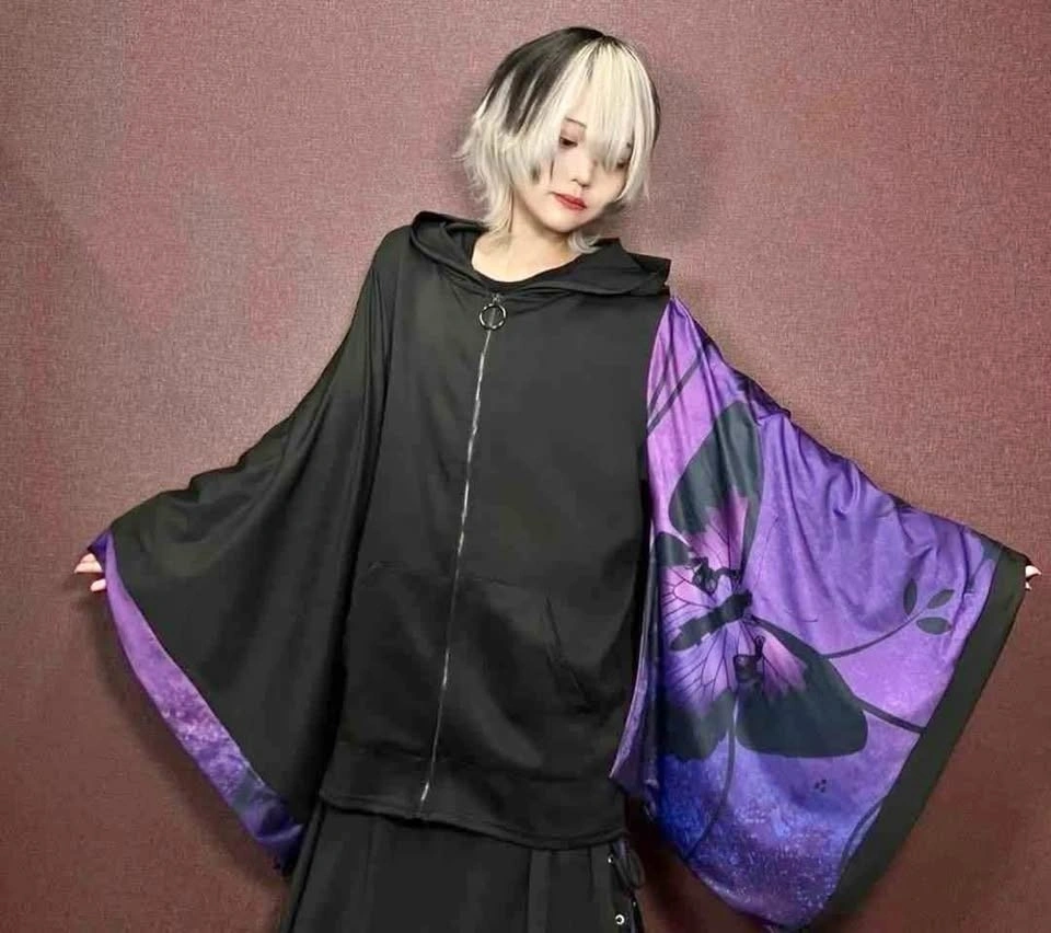 A unique statement piece with a deep purple butterfly design, perfect for fans of Japanese fashion or collectors.