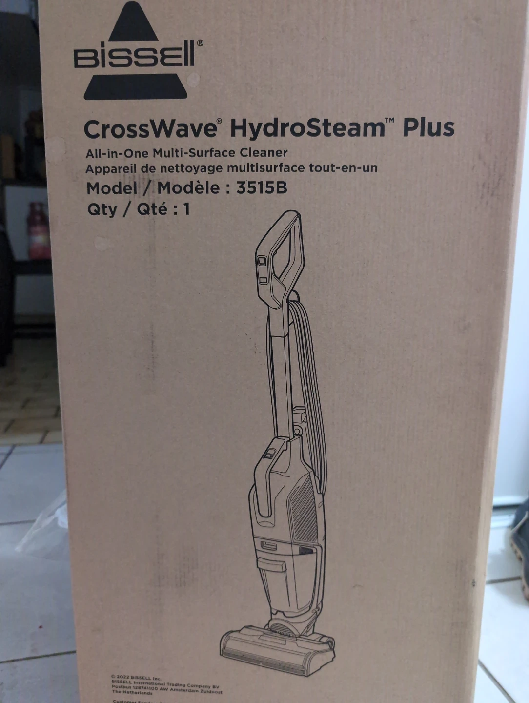 This is the Bissell CrossWave HydroSteam Plus, an all-in-one multi-surface vacuum cleaner. Model No is 3515B