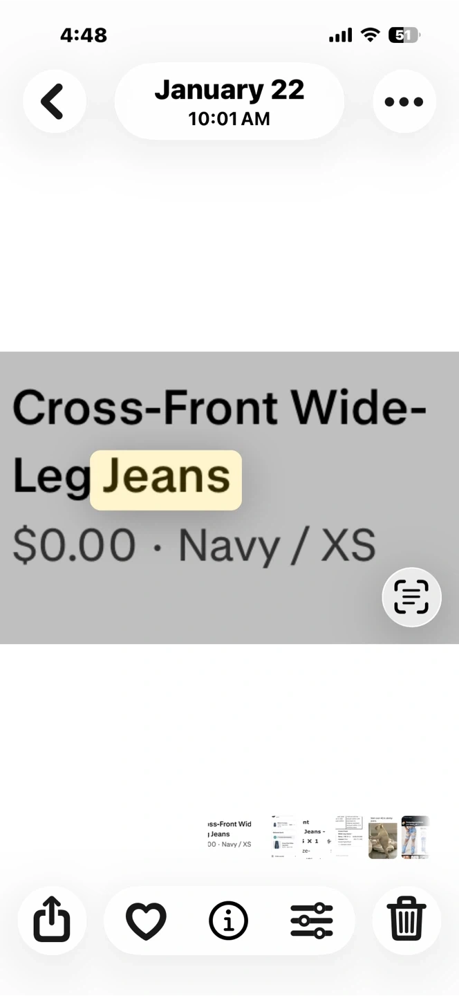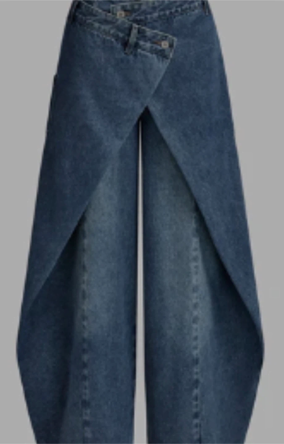 These cross-front wide-leg jeans are a stylish navy colour. They come in size XS. Denim material.