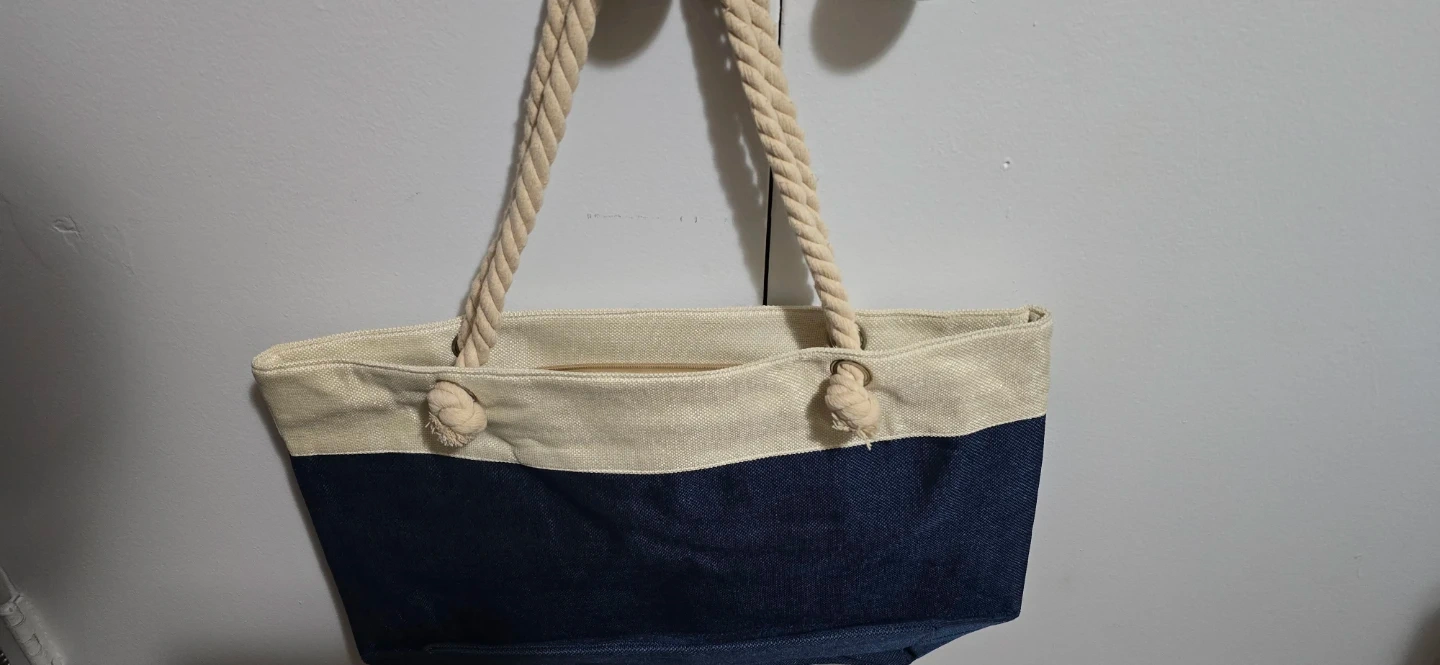 Beach Tote Bag - Navy with Steering Wheel Design