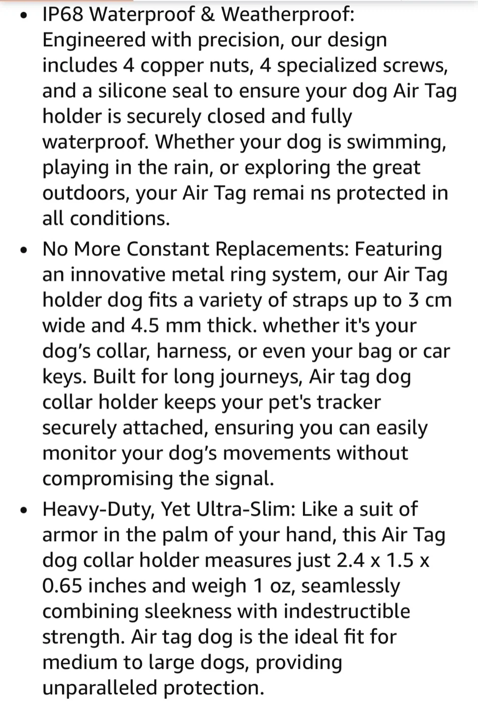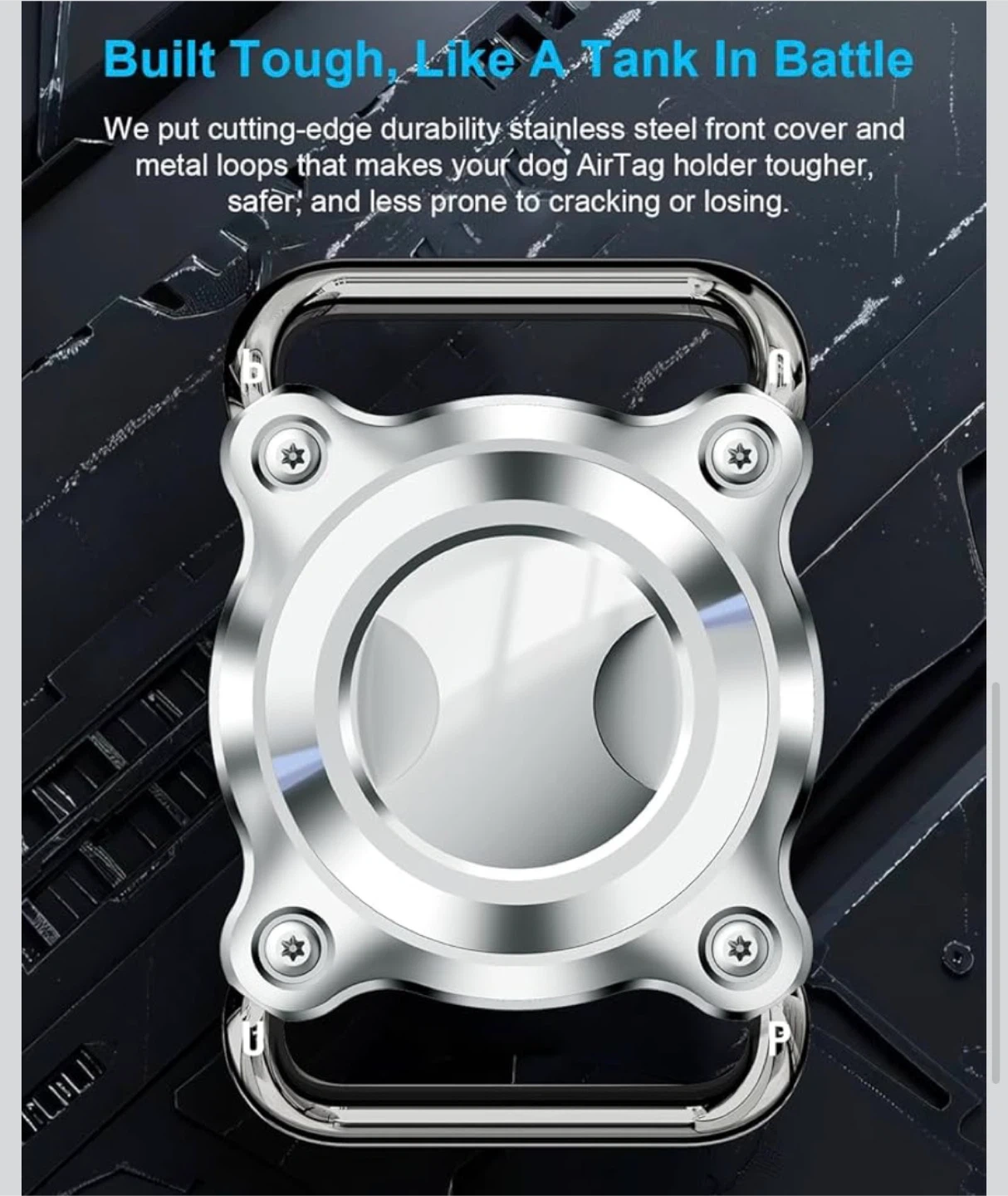 This ONEONTA dog AirTag holder offers superior protection for your AirTag. It's engineered with a durable stainless steel front cover and removable metal loops. It fits collars and straps up to 3cm wide and 4.5mm thick.