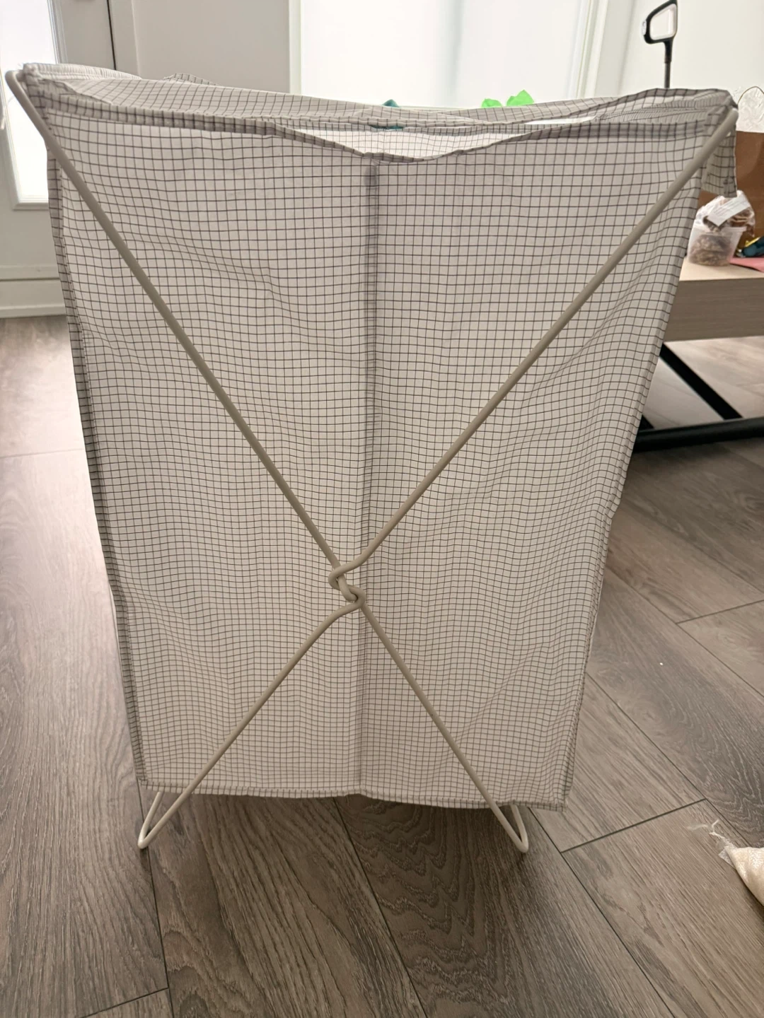 Selling an IKEA TORKIS laundry basket. It's in great shape and ready to help with your laundry needs! The pattern is a simple grid and the frame is lightweight and easy to move around