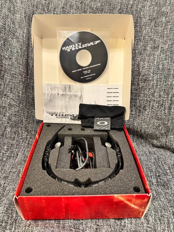 RARE Oakley Thump MP3 Sunglasses – 256MB – Complete in Box Fully functional and in excellent condition. These iconic Oakley Thump sunglasses feature a built-in 256MB MP3 player with flip-up lenses and integrated earbuds. Comes with everything shown in photos — great collector’s piece or functional vintage tech! Includes: • Oakley Thump sunglasses with 256MB built-in MP3 player • Original red Oakley box • USB charging + data cable • Software CD & manuals • Genuine Oakley soft pouch • Original foam packaging insert Perfect for collectors, Oakley fans, or anyone who loves rare tech gear. Price is firm. Cash only. Pickup — Downtown, West End.