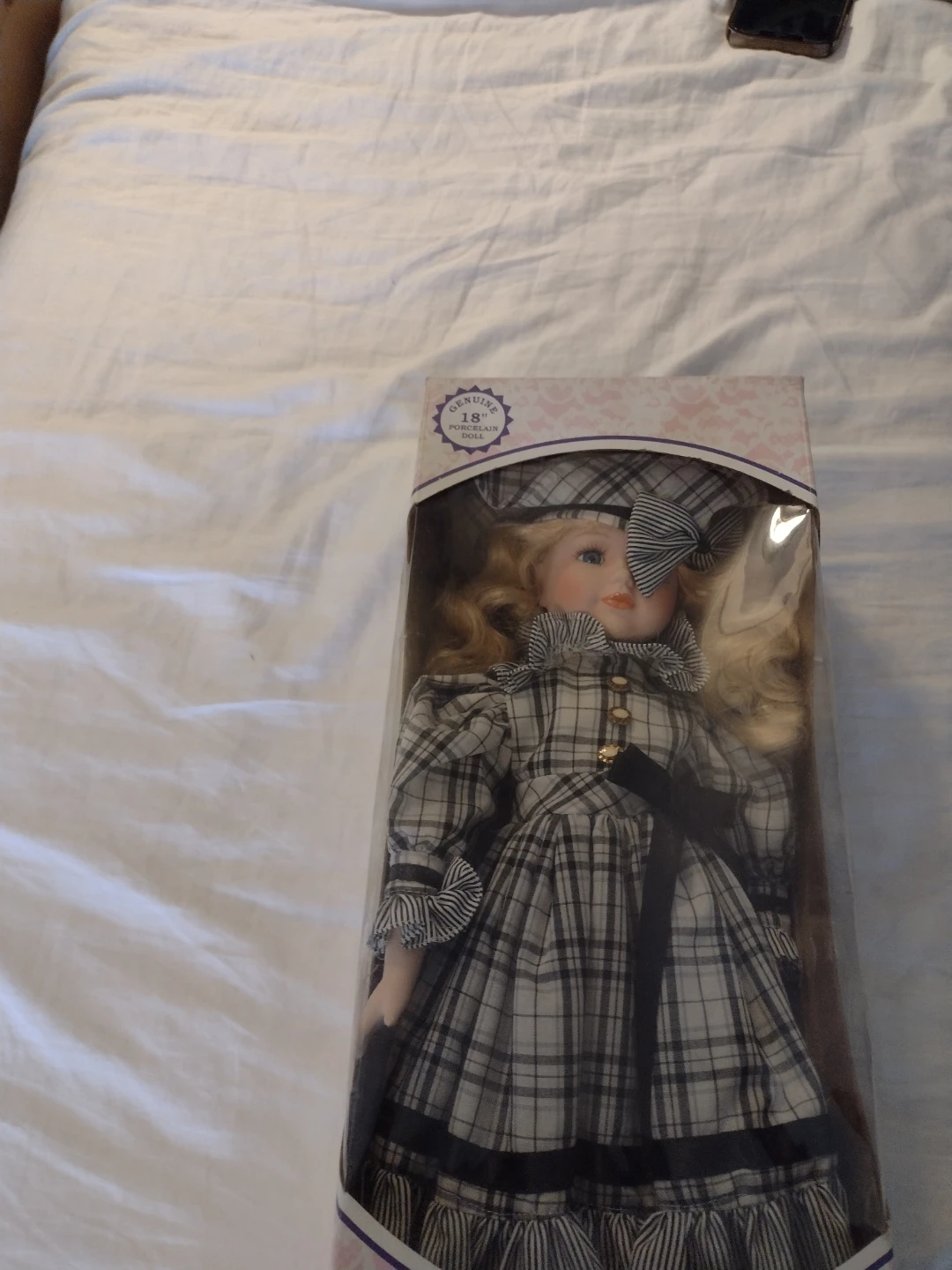 1 / 41 / 4Buy & SellTimeless Treasures 18" Porcelain DollTimeless Treasures 18" Porcelain Doll$5Genuine 18-inch porcelain doll in a classic plaid dress. This doll is presented in its original packaging. It's a lovely decorative piece.WHERE TO MEETCheck LocationView MapSELLERverifiedJoeAgincourt N31219 reviews0 chats·0 favorites·11 viewsSEND CHAT TO SELLERHi Joe! I’m interested in your listing.Hi Joe! I’m interested in your listing.Get the Karrot app to chatSign In to chat