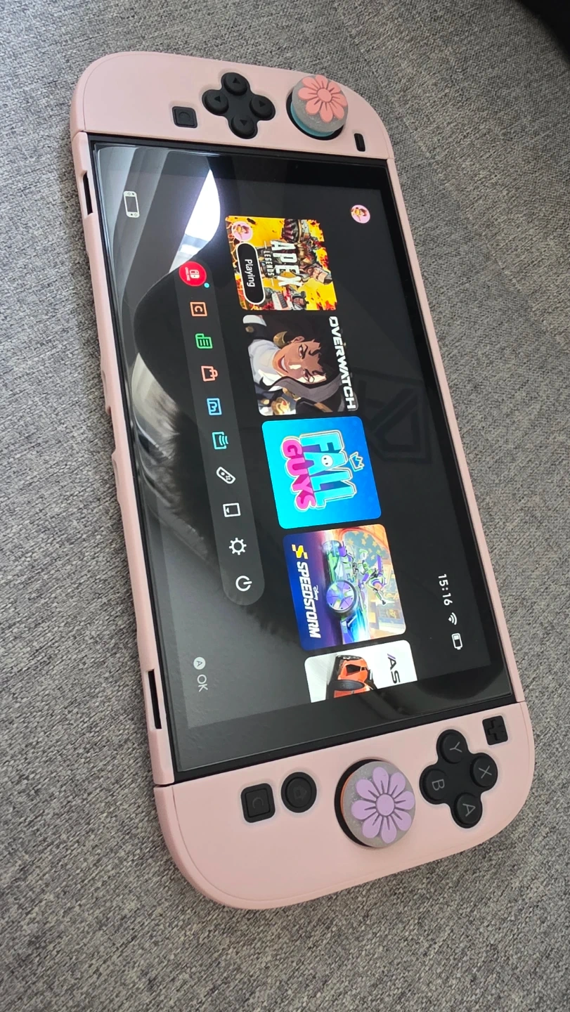 It also comes with two adorable flower-shaped thumb grips, one in pink and one in purple, for your joysticks.