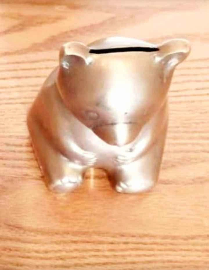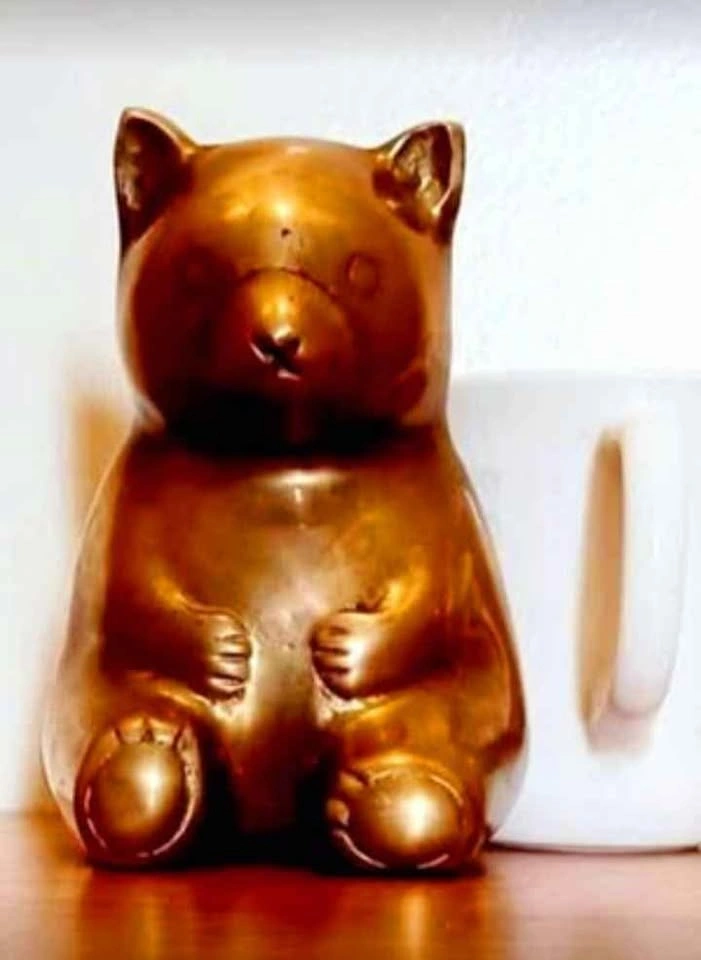Mid Century, Rare, Collectible Brass Teddy Bear , Decorative Peggy Bank 1950s - Made in Korea. Very Good Condition with Original Sticker.