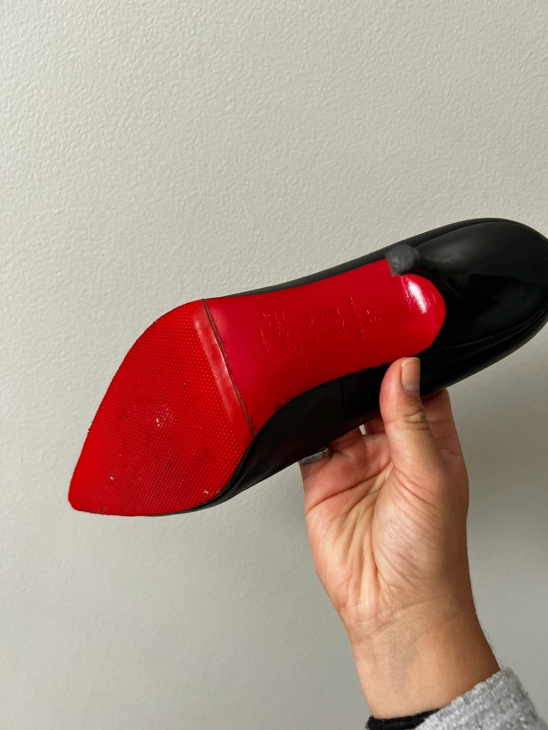 Selling a pair of Christian Louboutin black heels. They show some signs of wear, but the iconic red soles are still in great shape. Perfect for adding a touch of luxury to your wardrobe!
