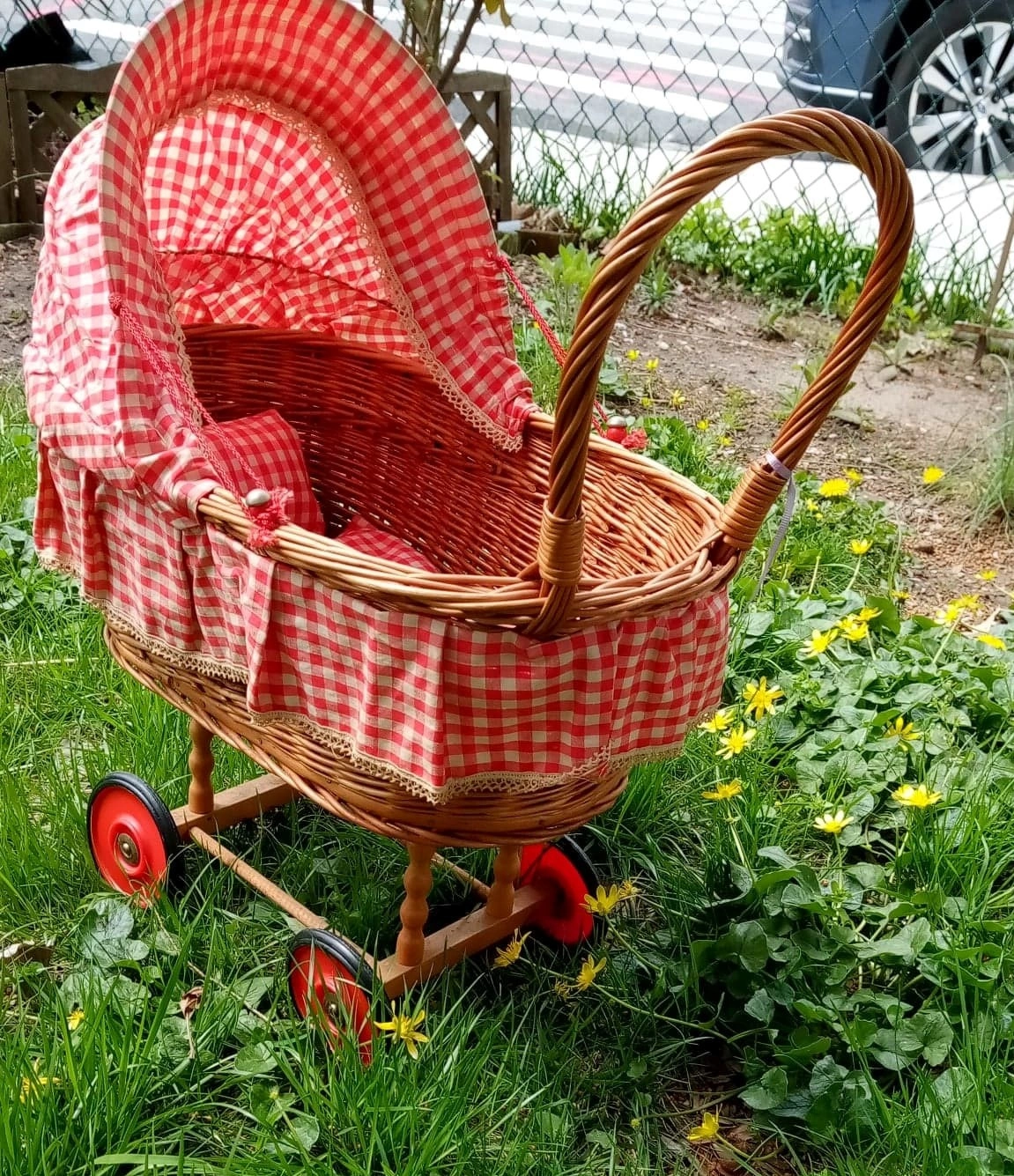 vintage-style wicker doll carriage