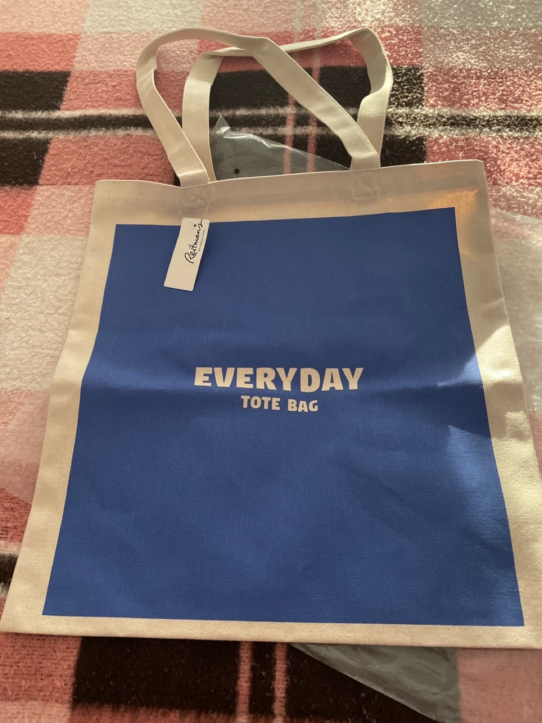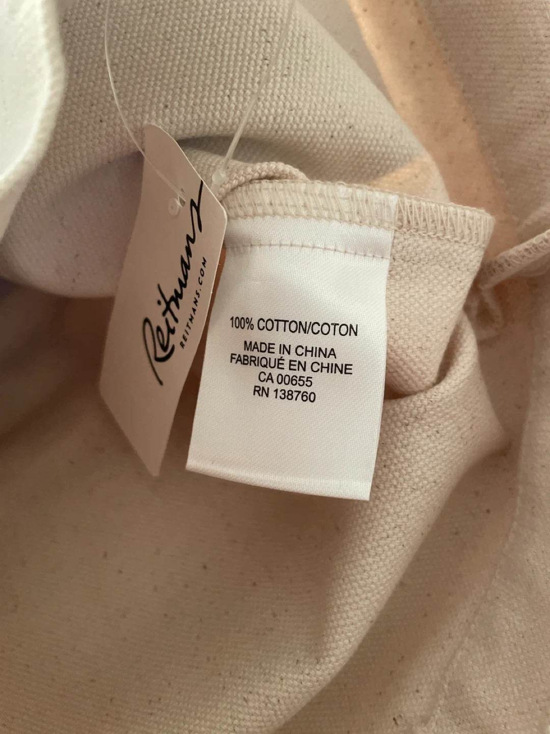 This is a Reitmans Everyday Tote Bag. It's made of 100% cotton. One size fits all. Great for carrying your daily essentials!