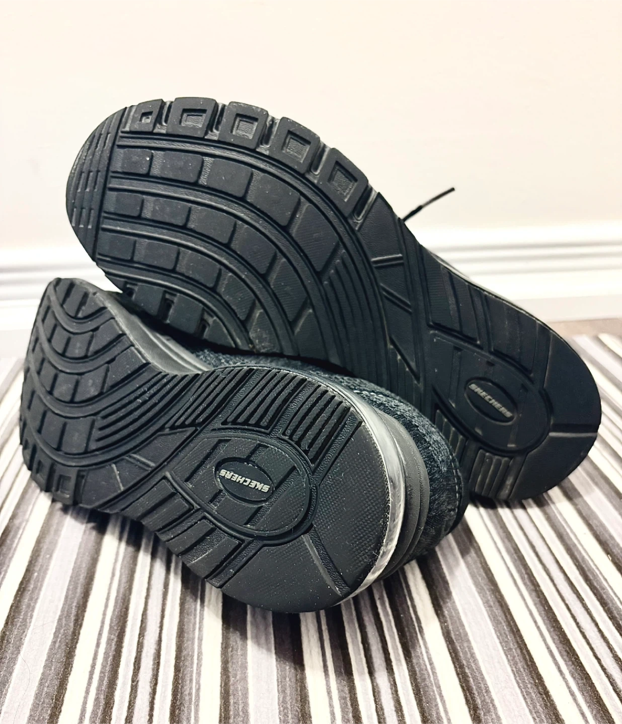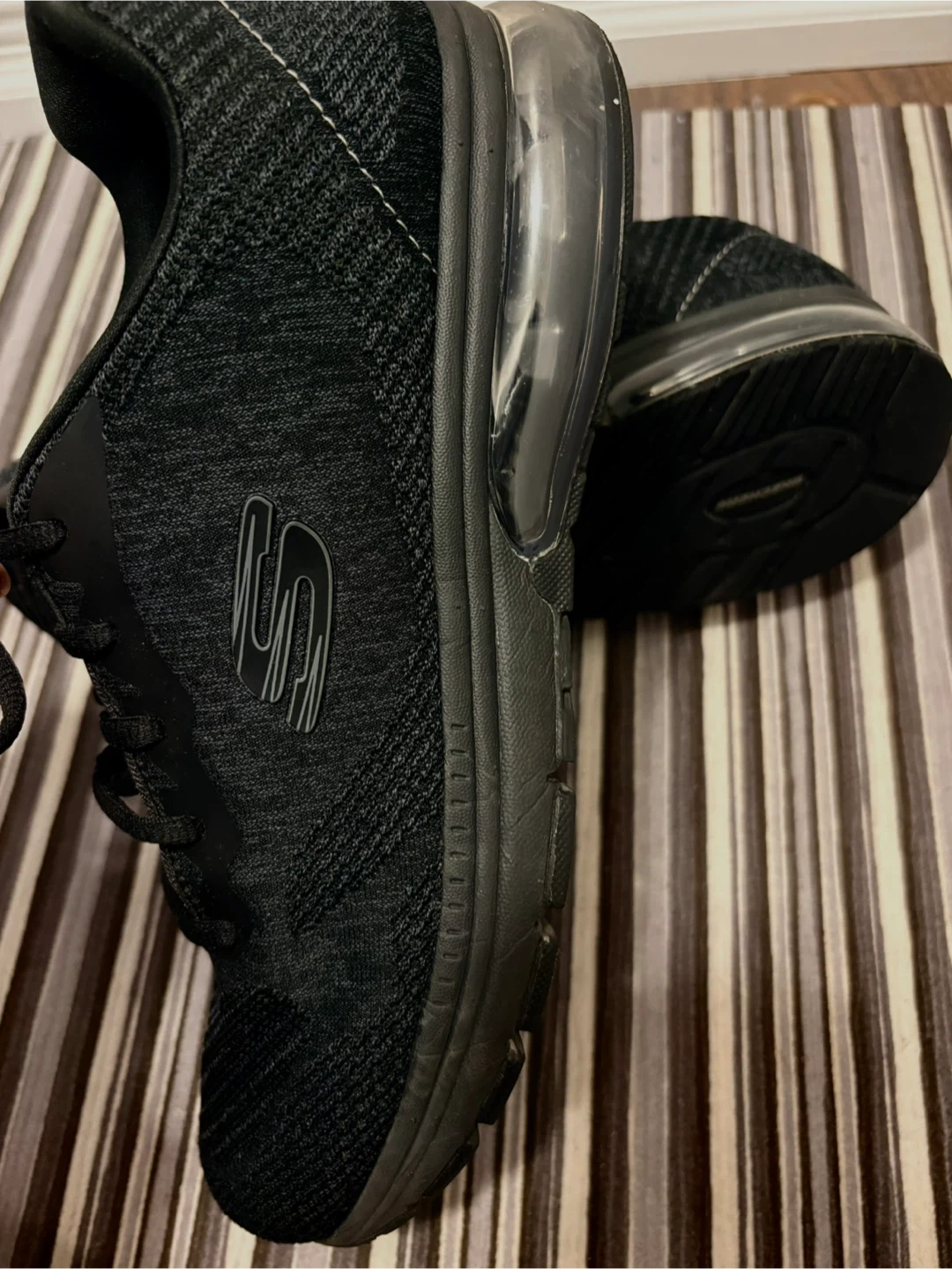 Skechers sneakers in black. Featuring air cushion soles for comfort. Lace-up closure with a breathable knit upper. Size 10 US/ 40 EUR. Excellent for walking or casual wear! Cash only please. Pick up at 5095 Yonge St. Yonge/North york center.