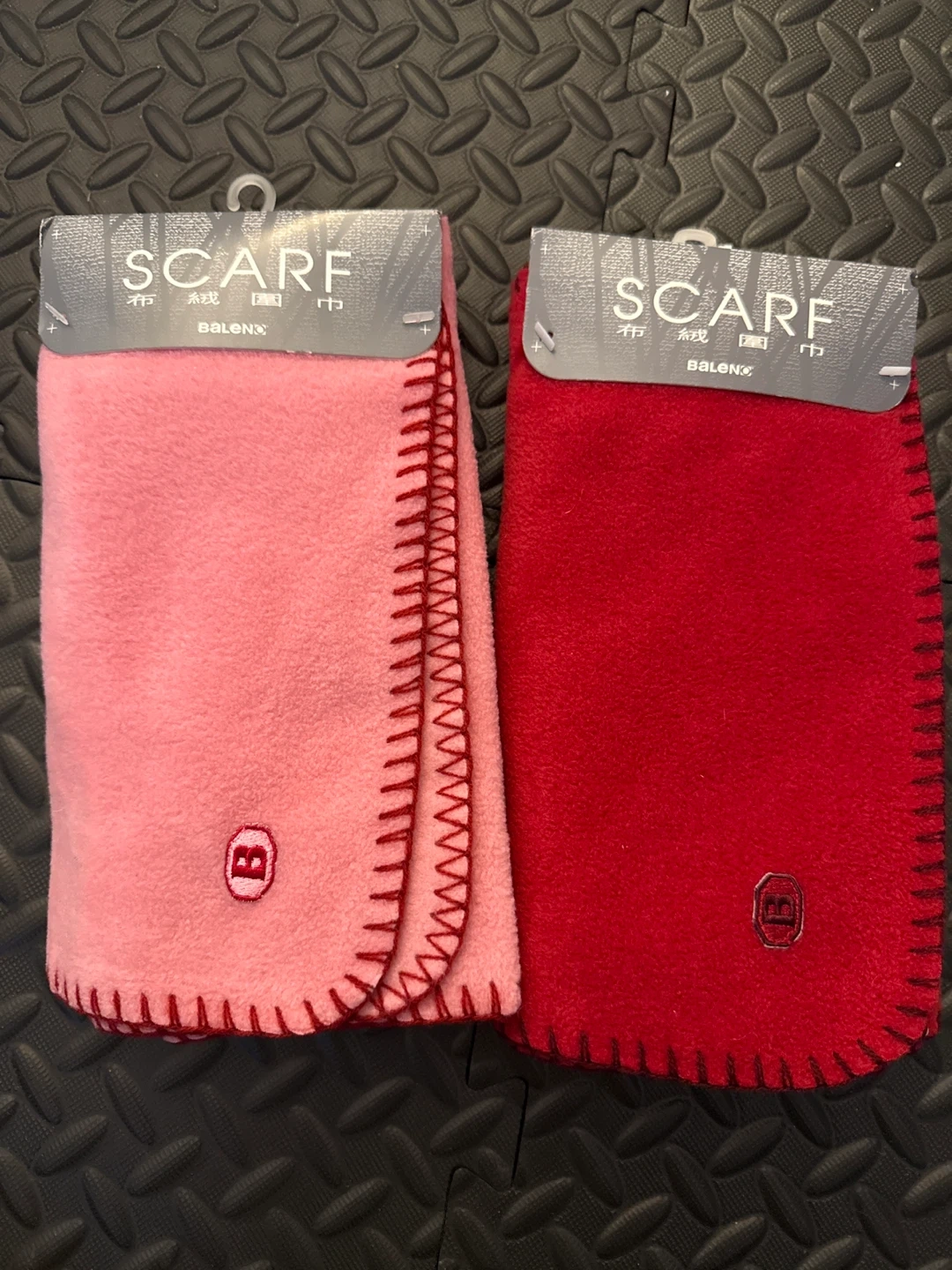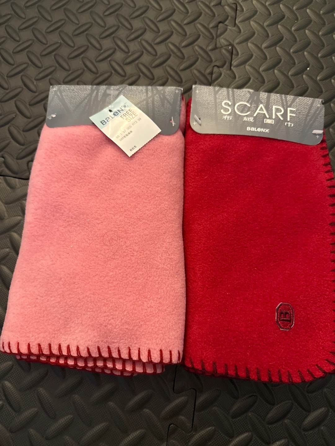 I have two brand new Baleno scarves for sale! One is pink and the other is red. They are both soft and cozy. 100% polyester