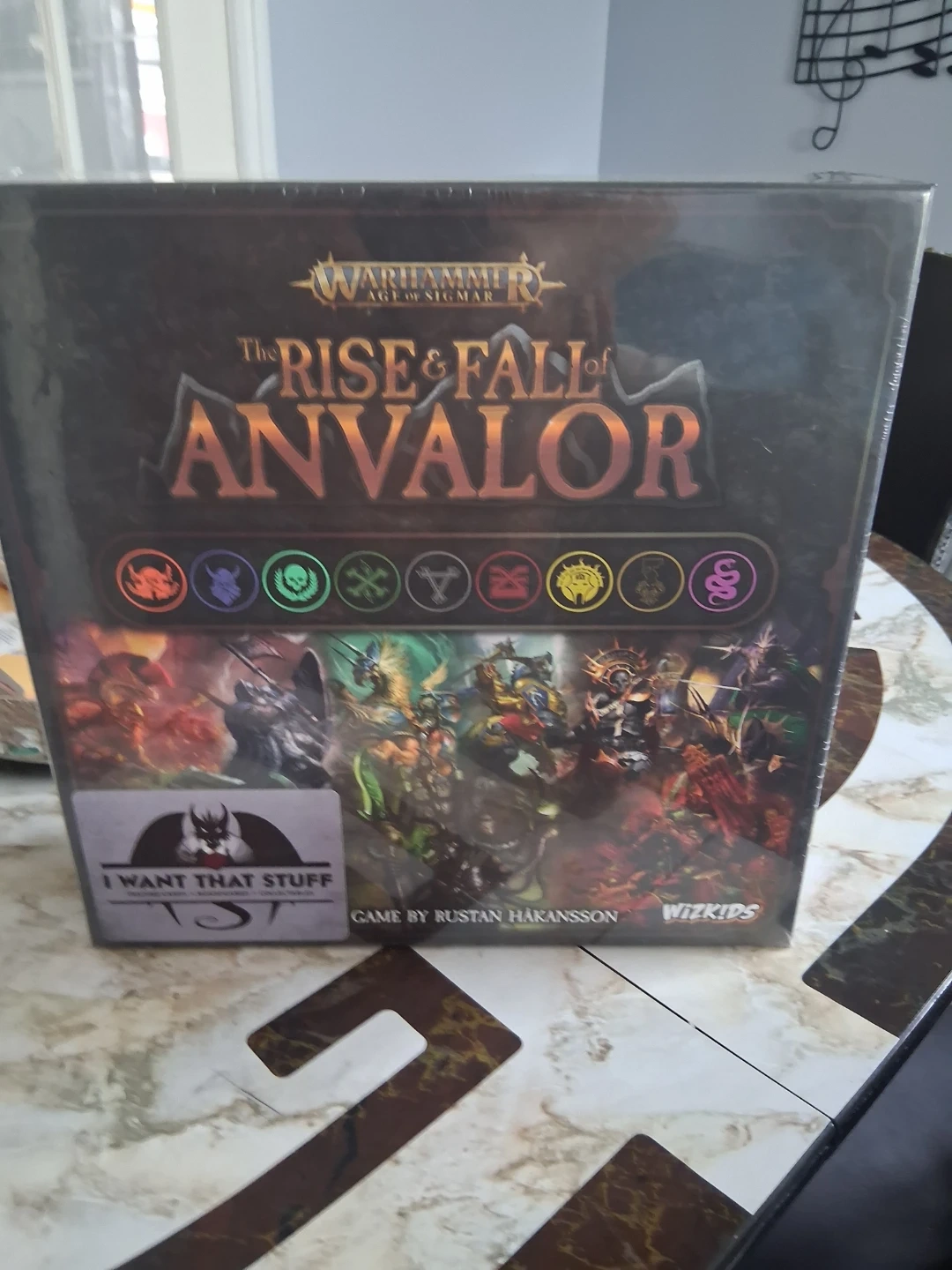 This is the Warhammer Age of Sigmar: The Rise & Fall of Anvalor board game. It's designed for 1-4 players and takes about 60 minutes to play. Ages 14+. Includes a rulebook, game board, faction and enemy tiles, and influence tokens.