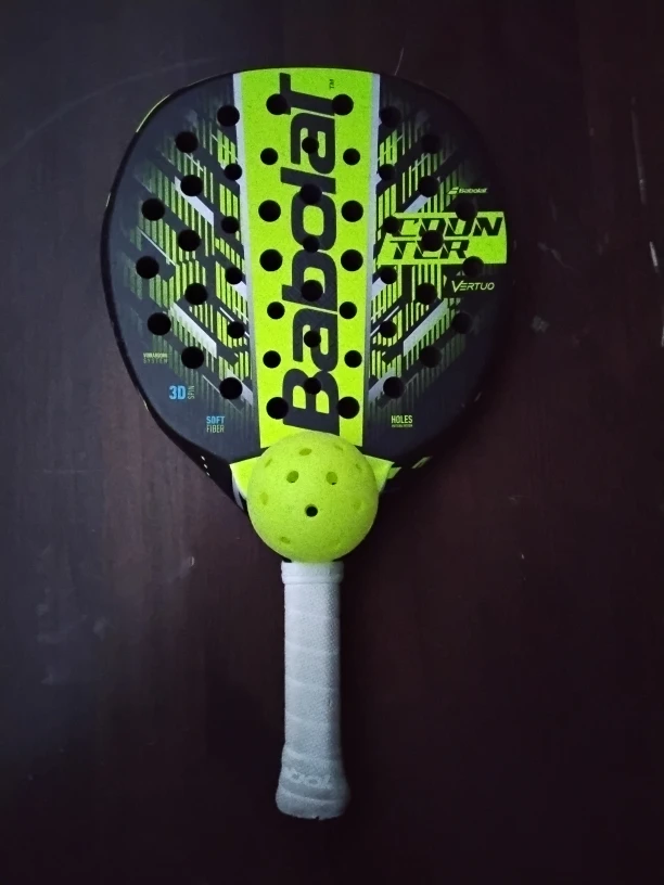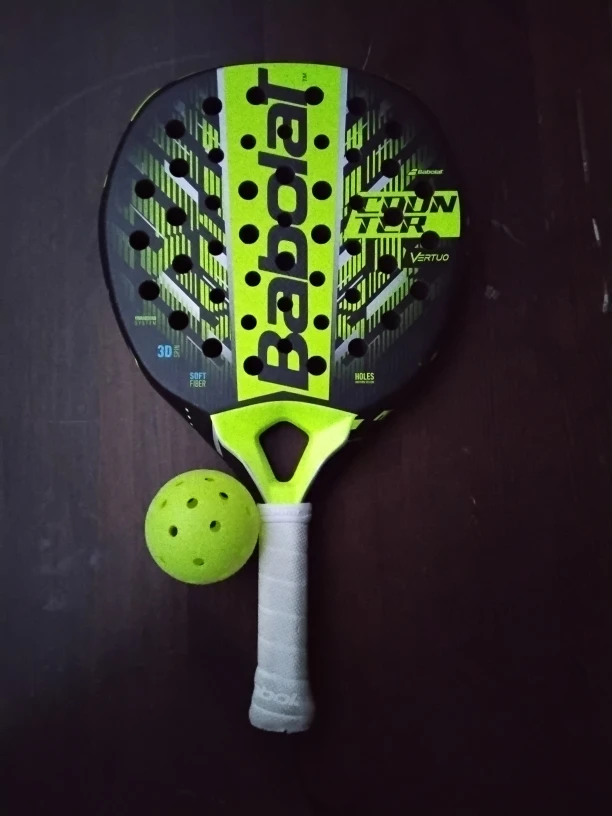 The product in the image is a Babolat Counter Vertuo padel racket. It is designed for counter-attacking players who are looking for a racket that provides tolerance and easy power. This item, as you can see, is in phenomenal condition.