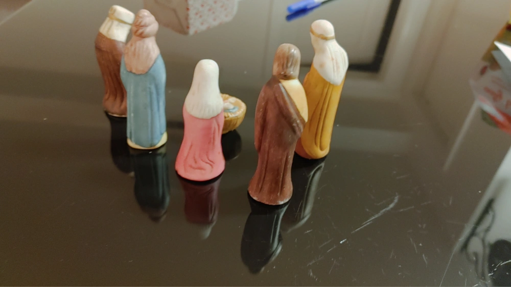 Design: The figurines are hollow (as seen in the bottom-view photo), which is common for smaller mass-produced ceramic ornaments to keep them lightweight.