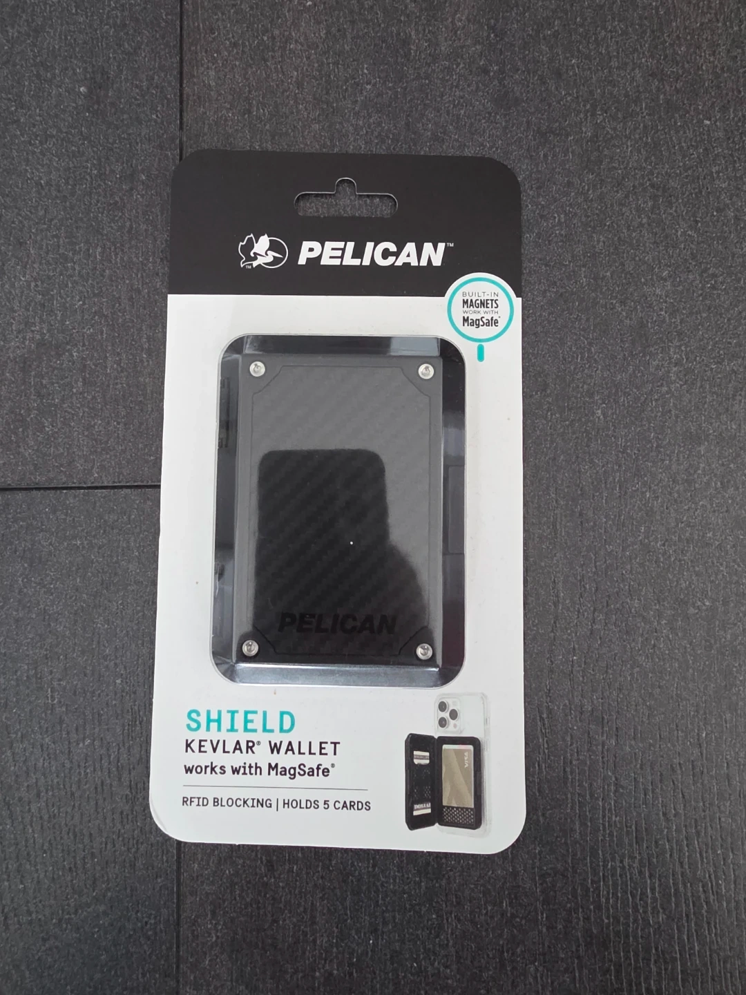 This Pelican Shield wallet features a genuine DuPont Kevlar panel and built-in magnets for MagSafe compatibility. It offers military-grade drop protection and two compartments for cards and cash, with RFID blocking. Made with minimal plastic packaging.