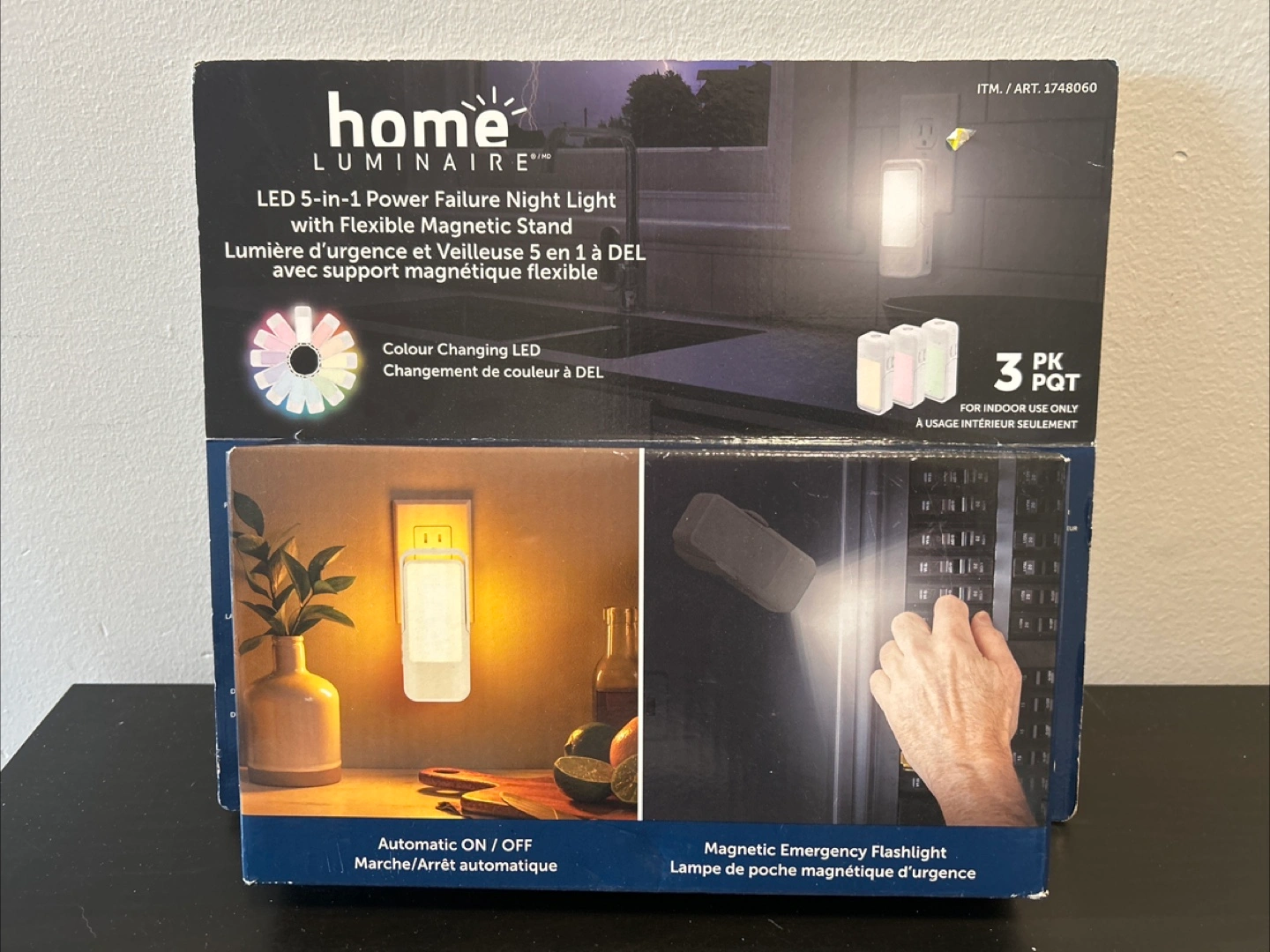 This Home night light offers 5-in-1 functionality with colour changing LEDs. It's a great addition for any room needing a gentle light source. The unit plugs directly into a standard outlet.