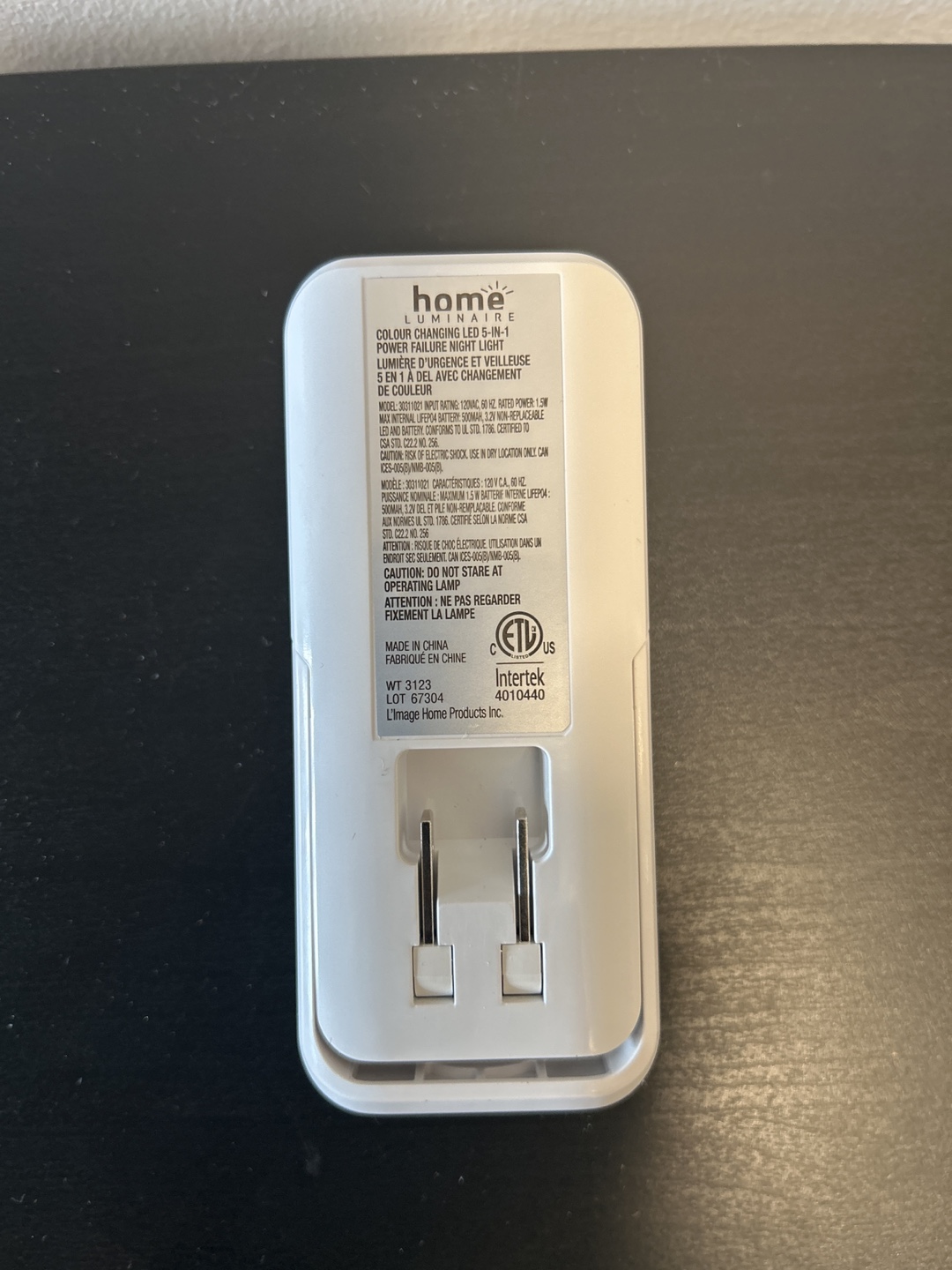 This Home night light offers 5-in-1 functionality with colour changing LEDs. It's a great addition for any room needing a gentle light source. The unit plugs directly into a standard outlet.