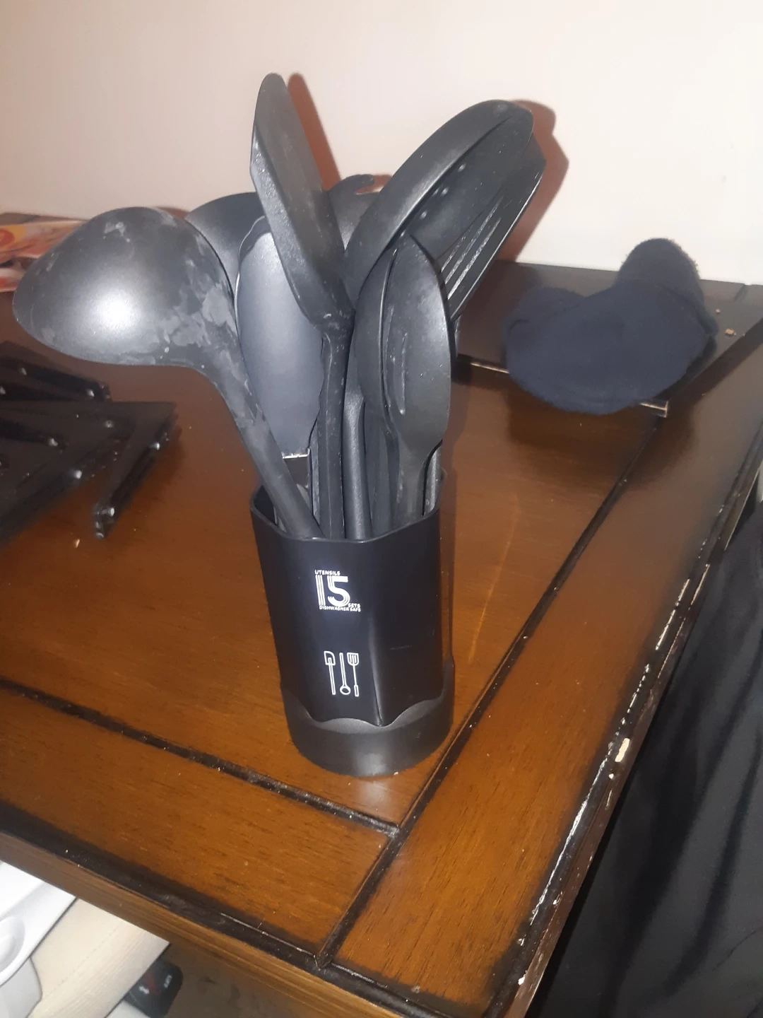 Buy & SellBlack Kitchen Utensil Set with HolderBlack Kitchen Utensil Set with Holder$20This is a black kitchen utensil set. It includes a variety of common cooking tools. All utensils fit neatly in the included holder.ConditionLike newWHERE TO MEETCheck LocationView MapSELLERverifiedKevinNorthland922 reviews0 chats·0 favorites·7 viewsSEND CHAT TO SELLERHi Kevin! I’m interested in your listing.Hi Kevin! I’m interested in your listing.Get the Karrot app to chatSign In to chat