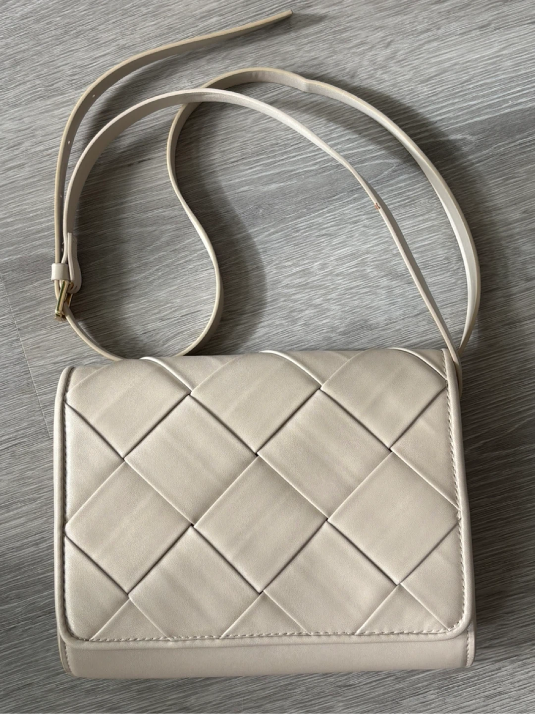 Selling a cute H&M crossbody bag. It features a lovely woven design and is perfect for carrying your essentials. The colour is a neutral beige, making it easy to match with any outfit!
