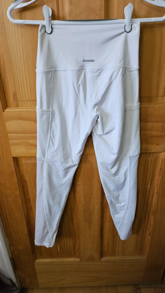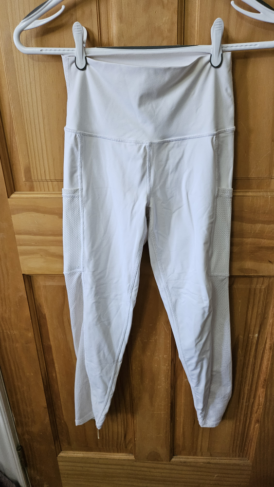 1000+BNWOT. White Aerie yoga pants. Mesh pockets down each leg, leading to mesh leg siding. Very comfortable, very versatile, perfect for practice. Tried on once for fit then washed. High rise. 28". See all photos. Available for pick-up near Oakwood Village.
