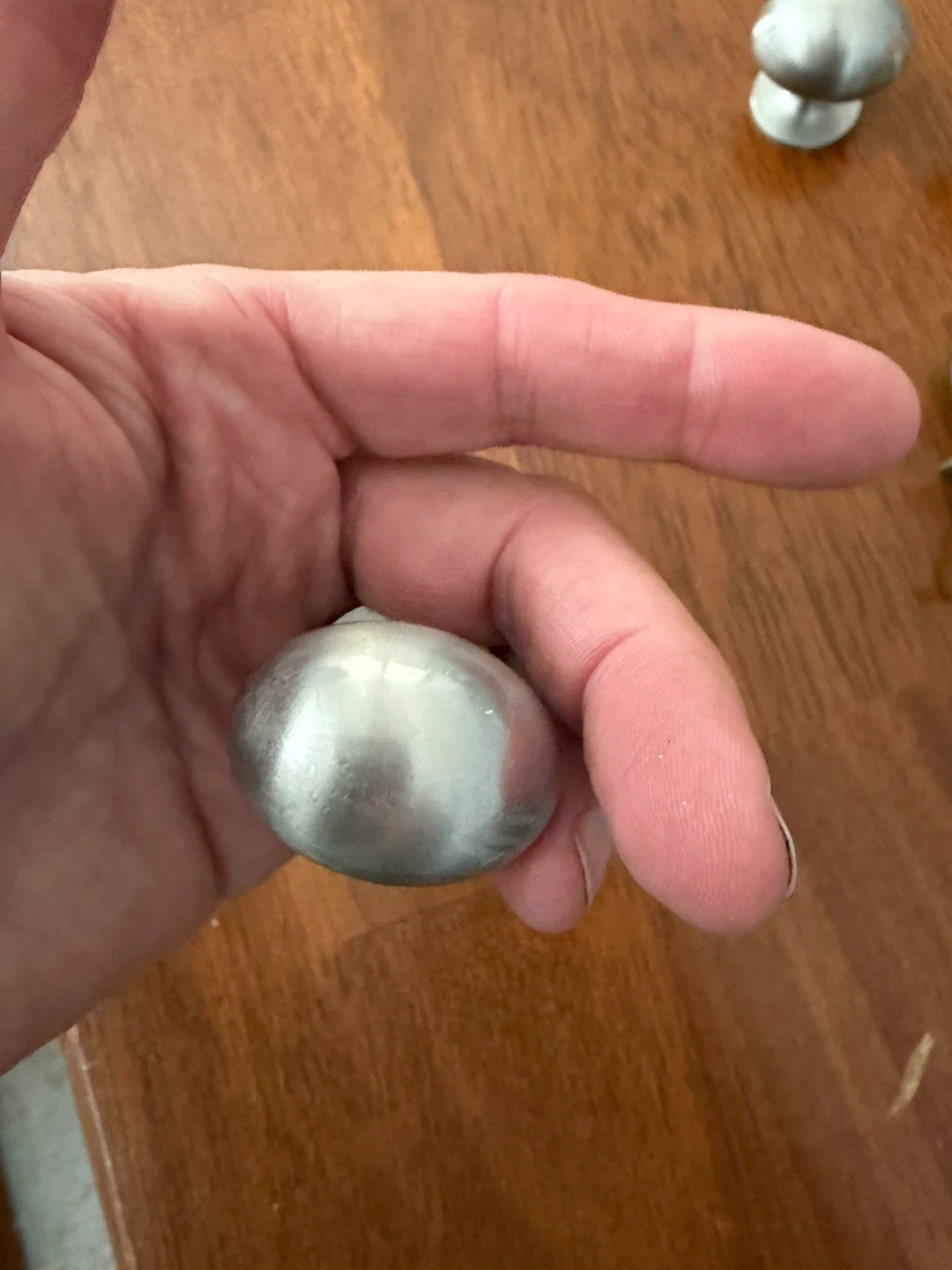 30 round cabinet knobs with a brushed nickel finish. Each knob has a screw included for installation. These are great for updating dresser drawers or kitchen cabinets! Price is $10 each.