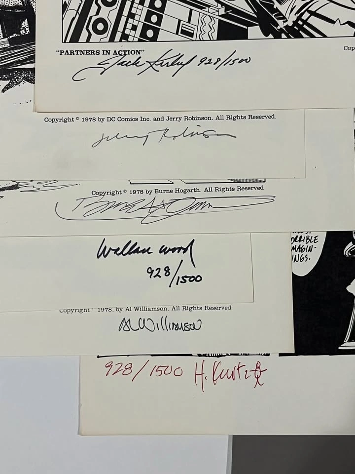 For sale is The Portfolio Of Fine Comic Art 928/1500. Total of 13 prints all hand signed and numbered by their respective artists, including: Jack Kirby, Jim Steranko, Will Eisner, Barry Windsor Smith. These are just some of the amazing artists in this portfolio. If you are a fan of comic book art, then this is the item for you.