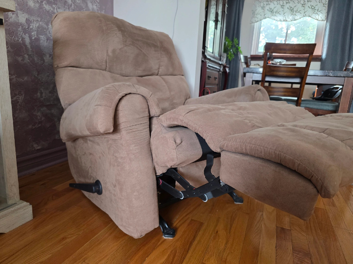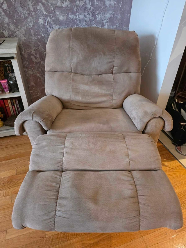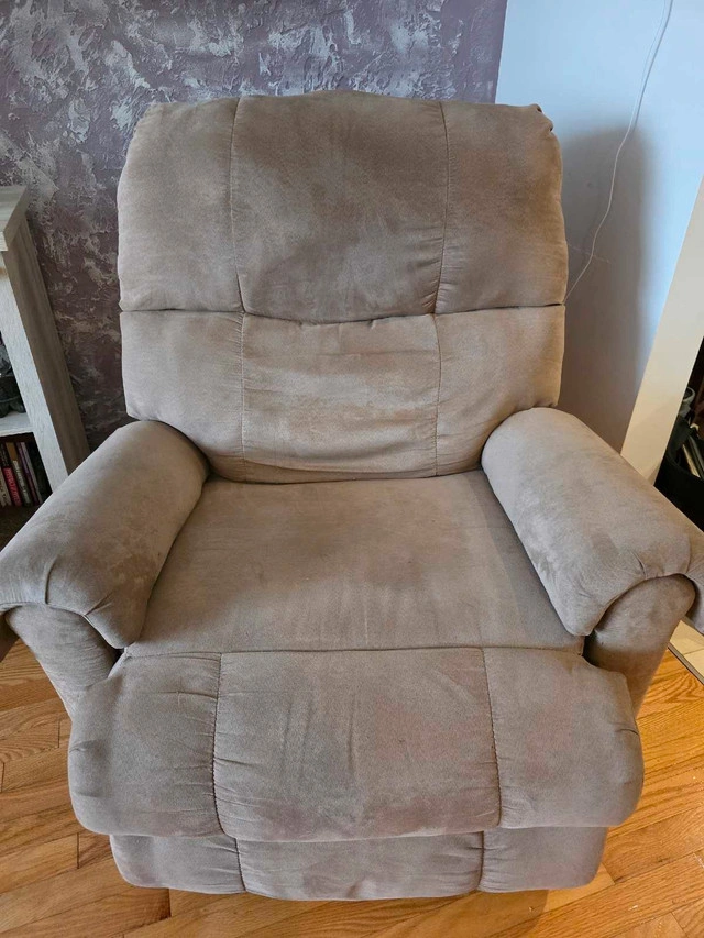 This is a super comfy, used recliner with a smooth reclining mechanism, perfect for lounging! It is in good condition. It has been a trusty companion for relaxation, and I'm sure it will continue to provide comfort in its new home. It has a sofa as a set. Feel free to message if you have any questions!