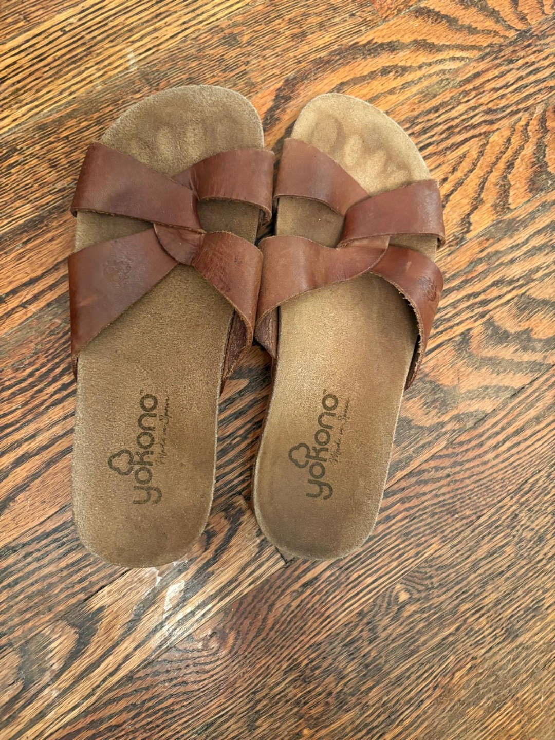 Brown leather sandals. Knotted design. Made in Spain. Pre-owned.