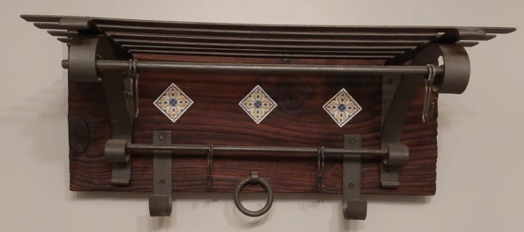 Beautiful rustic-style wall rack made of solid wood with decorative metal hardware.