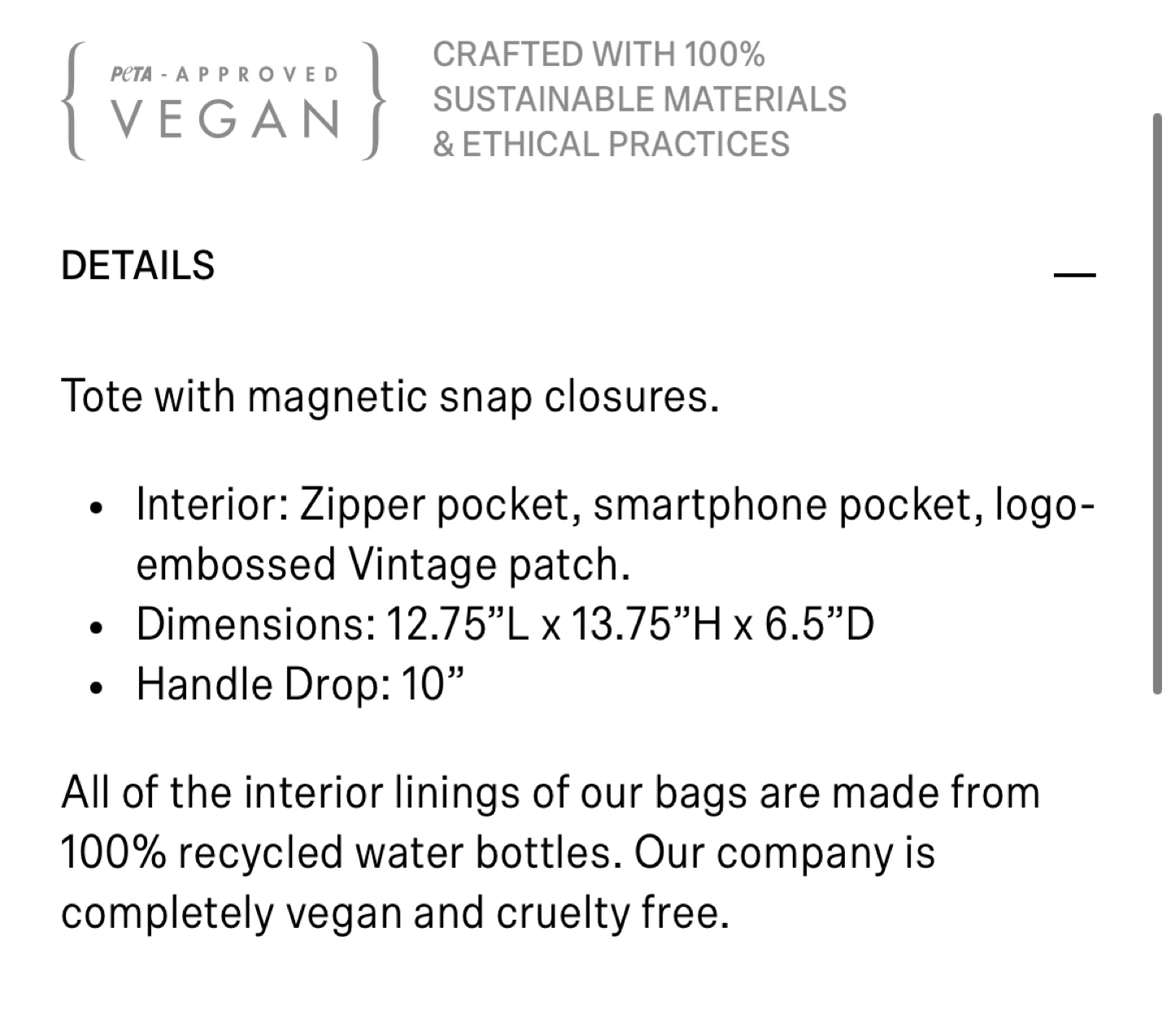 -Tote with magnetic snap closures. Interior has a zipper pocket, smartphone pocket, and logo-embossed patch.