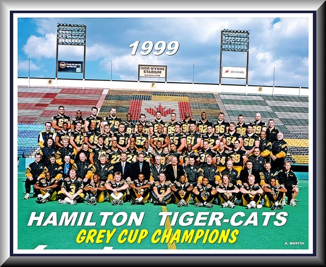 1999 Tiger-Cats SIGNED football Grey Cup Champs.
