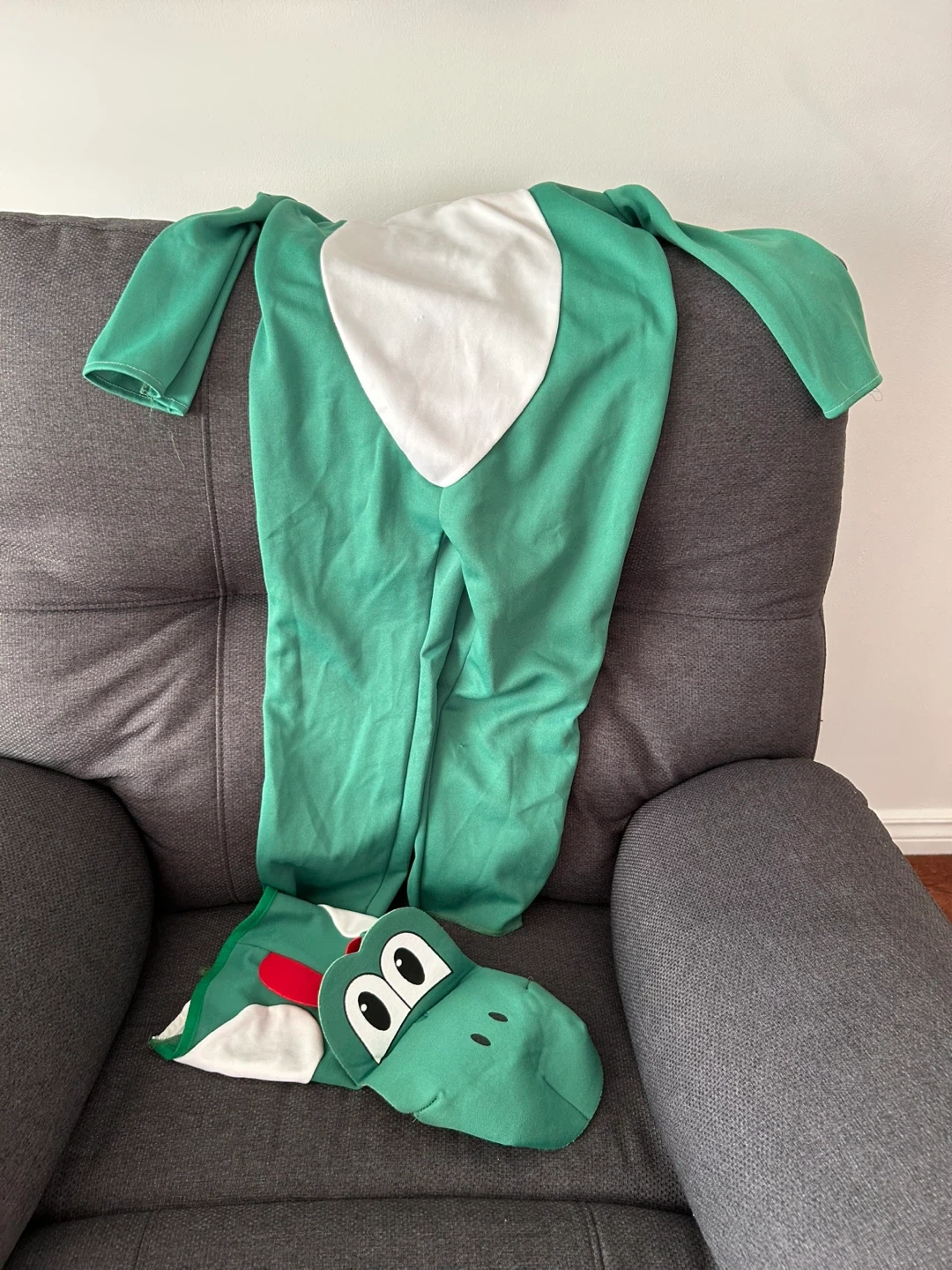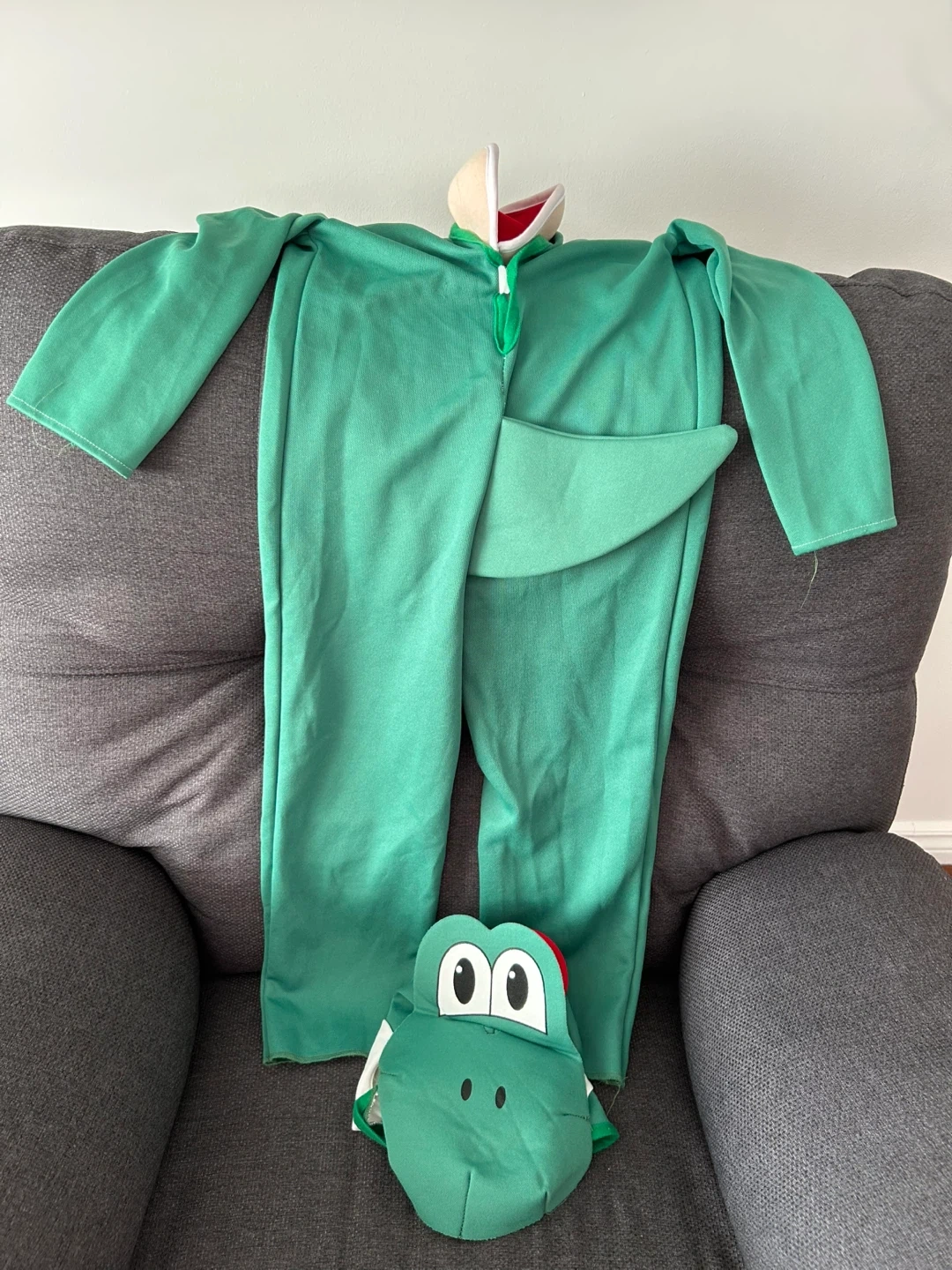 103Cute Yoshi costume for toddlers! It's in great condition and includes the full body suit and headpiece. Perfect for dress-up or Halloween!