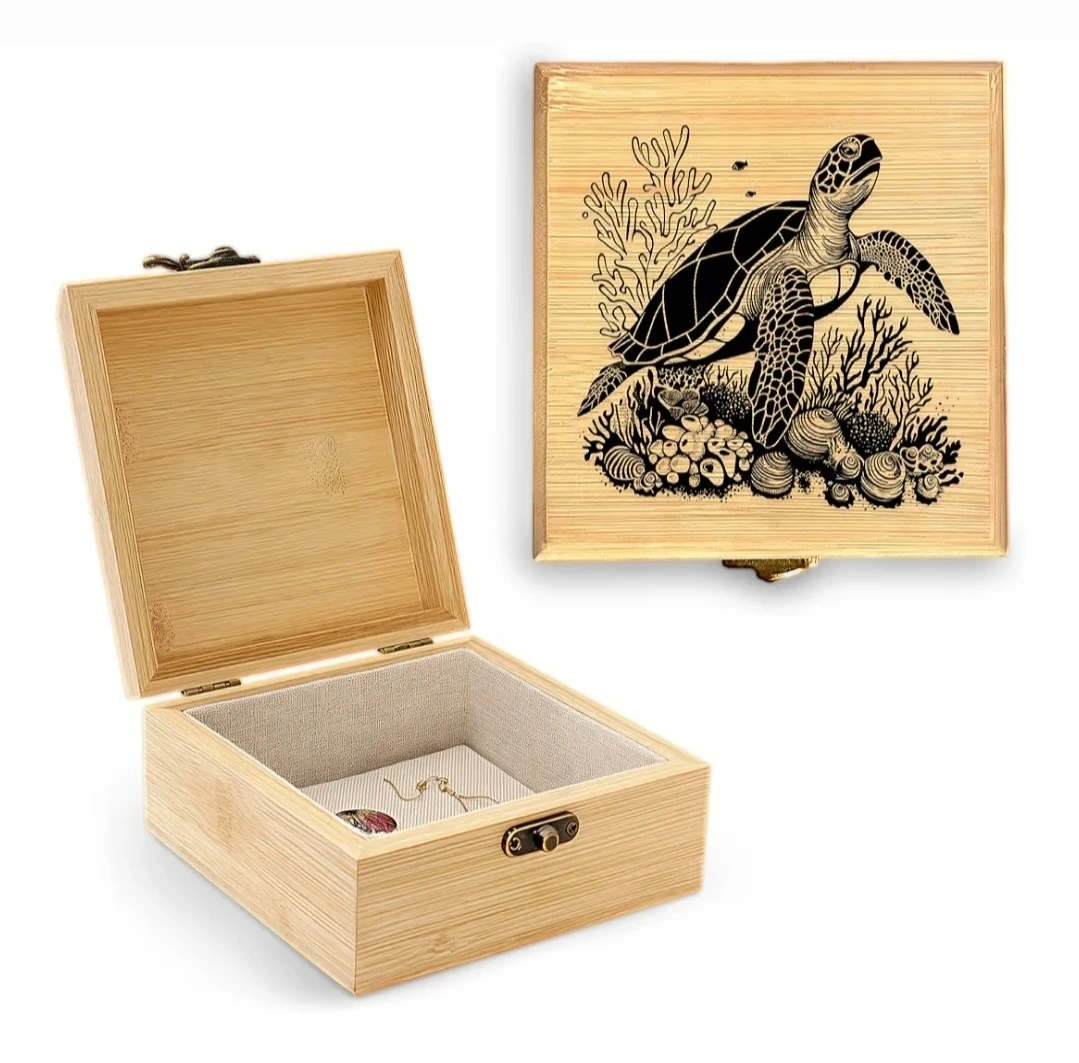 Sea turtle trinket box. Brand new. The cardboard box it came in ripped, but it would be lovely wrapped in tissue paper in a gift bag.