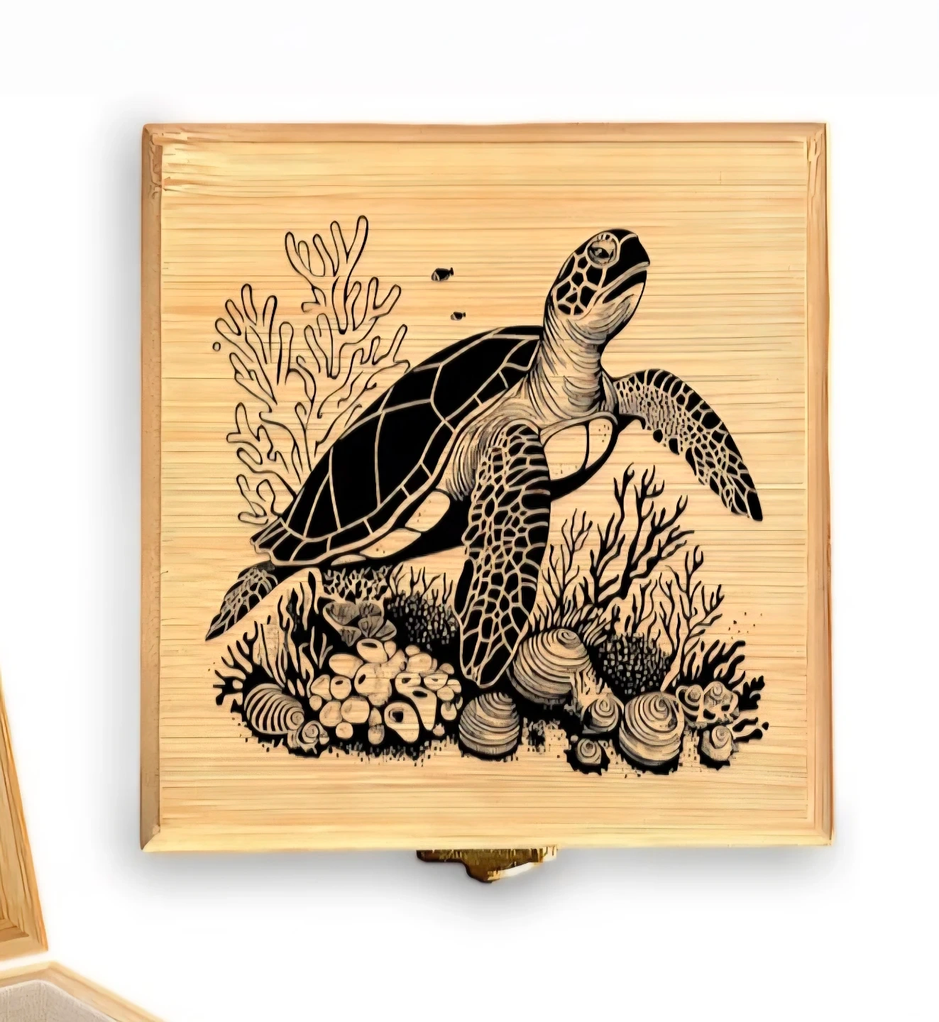 Sea turtle trinket box. Brand new. The cardboard box it came in ripped, but it would be lovely wrapped in tissue paper in a gift bag.