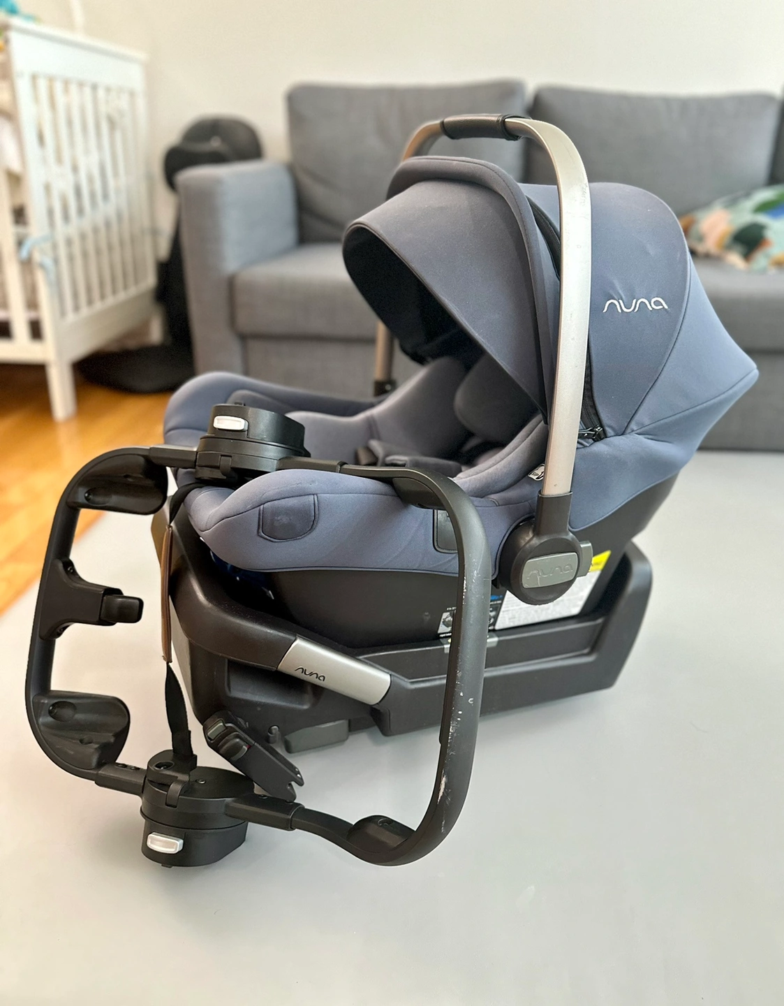 Nuna PIPA Lite LX car seat (base, adapter, and newborn insert).