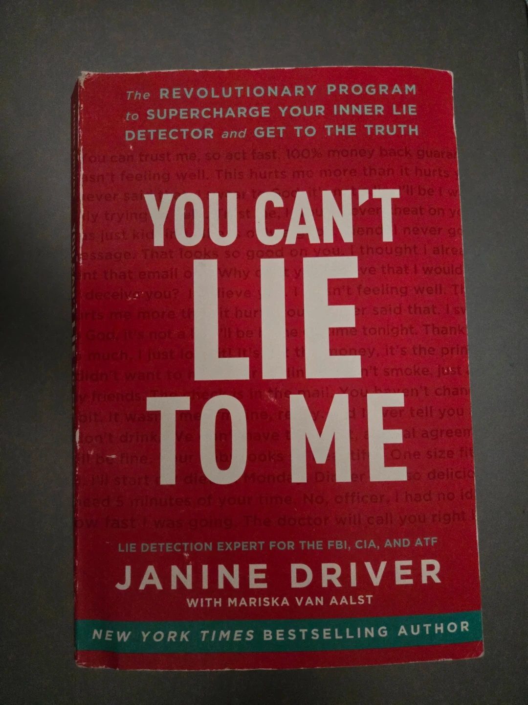 77Selling a copy of "You Can't Lie to Me" by Janine Driver. It's a revolutionary program to supercharge your inner lie detector and get to the truth! Perfect for anyone interested in lie detection and understanding human behaviour